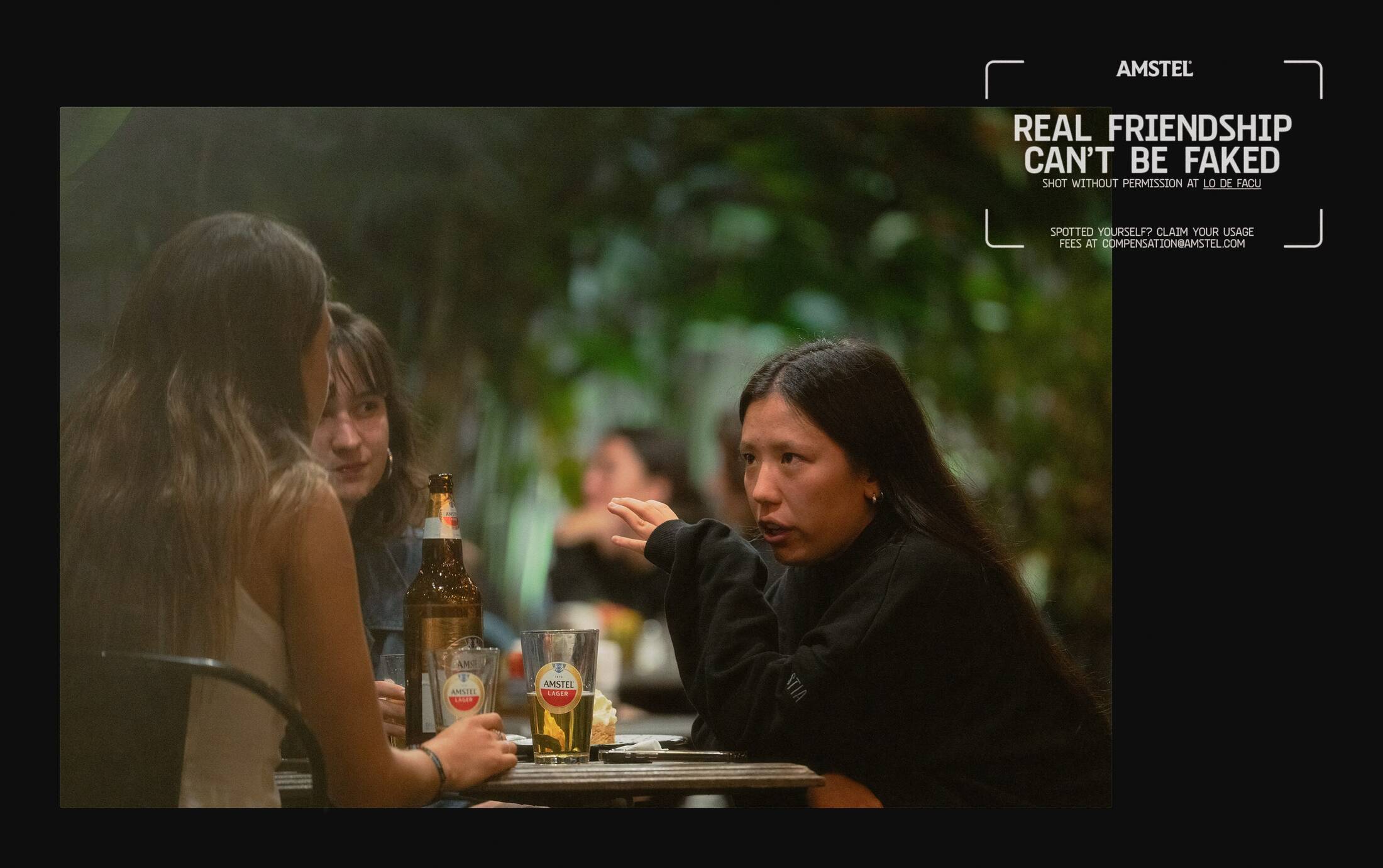 After the shots were taken, the team approached those who were photographed to inform them about the potential use of the images and to obtain their explicit consent. What remains are unposed scenes - observed rather than constructed - capturing connection as it naturally happens. As an extension of the idea, individuals who recognize themselves in campaign placements across outdoor and social channels are invited to come forward and claim a year’s supply of Amstel.