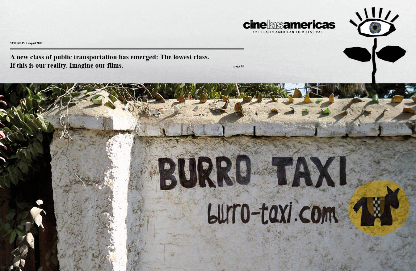 This professional campaign titled 'Sign, Donkey taxi, Bill' was published on April 01, 2009. It was created for the brand: Cine las Américas, . This Print medium campaign is related to the Recreation, Leisure industry and contains 3 media assets. It was submitted over 16 years ago.
