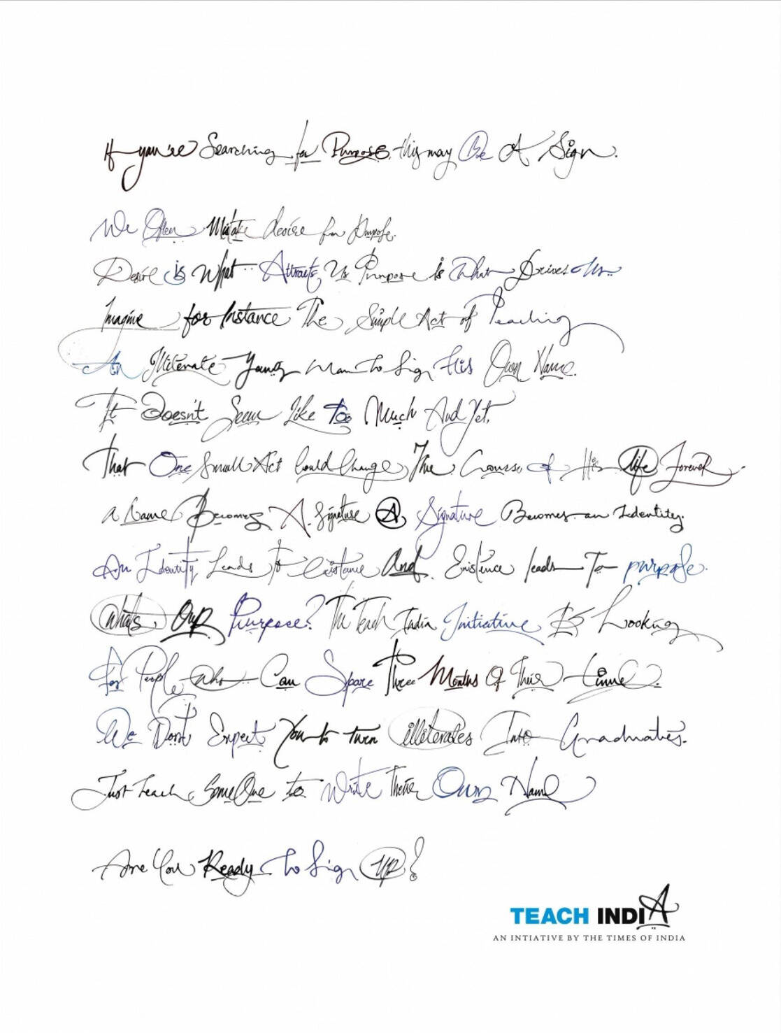 This professional campaign titled 'Sign To Teach To Sign' was published in India in December, 2012. It was created for the brand: The Times of India, by ad agency: TapRoot. This Print medium campaign is related to the Media industry and contains 1 media asset. It was submitted almost 13 years ago.