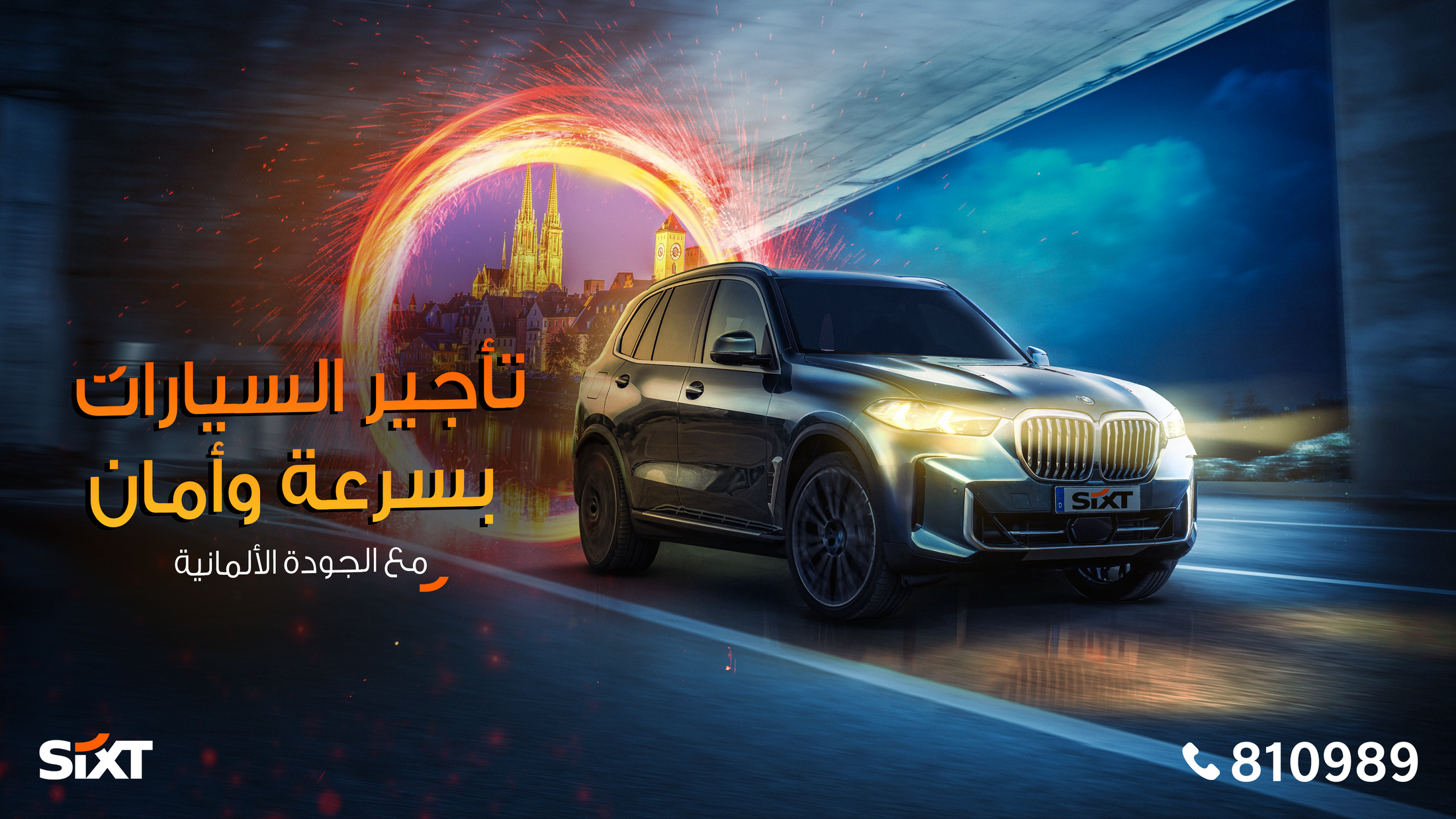 sixt offers a wide range of cars, including bmw, houndai, It is an advertising campaign to increase awareness of the brand sixt in countries that are about to dispense with the brand service, such as Jordan and Yemen, and at the same time remind customers of its presence in the largest countries, such as Germany and Austria, and that it is number one. The idea of the production is that the service is provided quickly at any time and in any place, such as the portal Doctor Strange.
