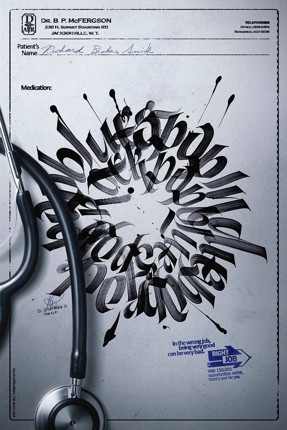 This professional campaign titled 'Sketch, Uniform, Medication' was published in Brazil in March, 2015. It was created for the brand: Right Job, by ad agency: Africa. This Print medium campaign is related to the Professional Services industry and contains 3 media assets. It was submitted over 10 years ago.