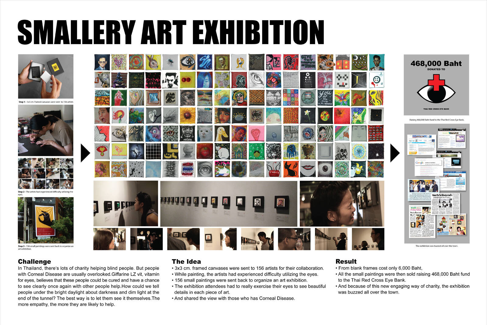 This professional campaign titled 'Smallery Art Exhibition' was published in Thailand in October, 2010. It was created for the brand: Red Cross, by ad agency: BBDO. This Ambient medium campaign is related to the Public Interest industry and contains 1 media asset. It was submitted about 15 years ago.