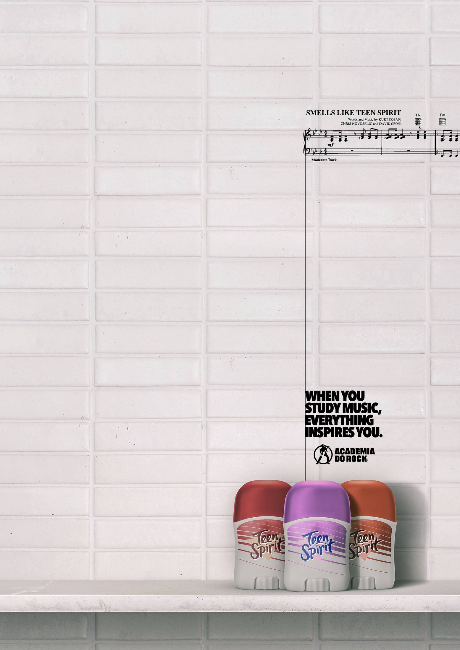 This professional campaign titled 'Smoke on the water, Black dog, Smells like teen spirit' was published in Brazil in September, 2016. It was created for the brand: Academia do Rock, by ad agency: Candy Shop. This Print medium campaign is related to the Education industry and contains 3 media assets. It was submitted about 9 years ago.