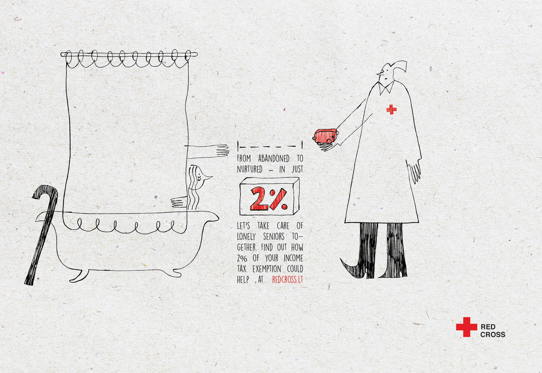 On April, when people are doing their taxes, lots of institutions ask to donate 2 % of income tax. Social organizations are most active during those days, because it’s extremely important for them to collect that percentage of funds. Therefore, our challenge was to stand out from the other applicants and provoke people to donate to Red Cross. People understand that our society is aging. It’s a complex problem which we need to solve together with politicians and active members of our society. We also know of the necessity to take care of lonely seniors. However, from personal perspective, people feel they are too busy to take real actions, so we decided to show that Red Cross is taking care of it for them. The only thing they need to do is to donate these 2 %. We decided to draw people’s attention with a delicately humorous situation and minimal but charming animation style.