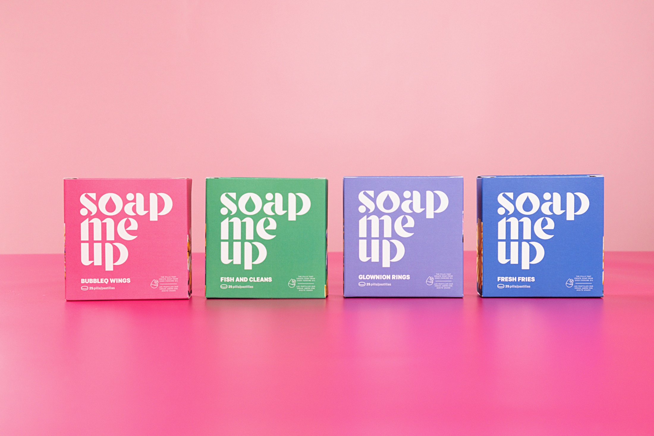 We created "Soap Me Up," innovative pills designed to convert used cooking oil into soap. These pills are primarily composed of coconut glycerin, a dry and natural material that serves as the base for soap creation. When "Soap Me Up" pills are mixed with used cooking oil, a reaction occurs that generates an effective soap for washing dishes or hands.