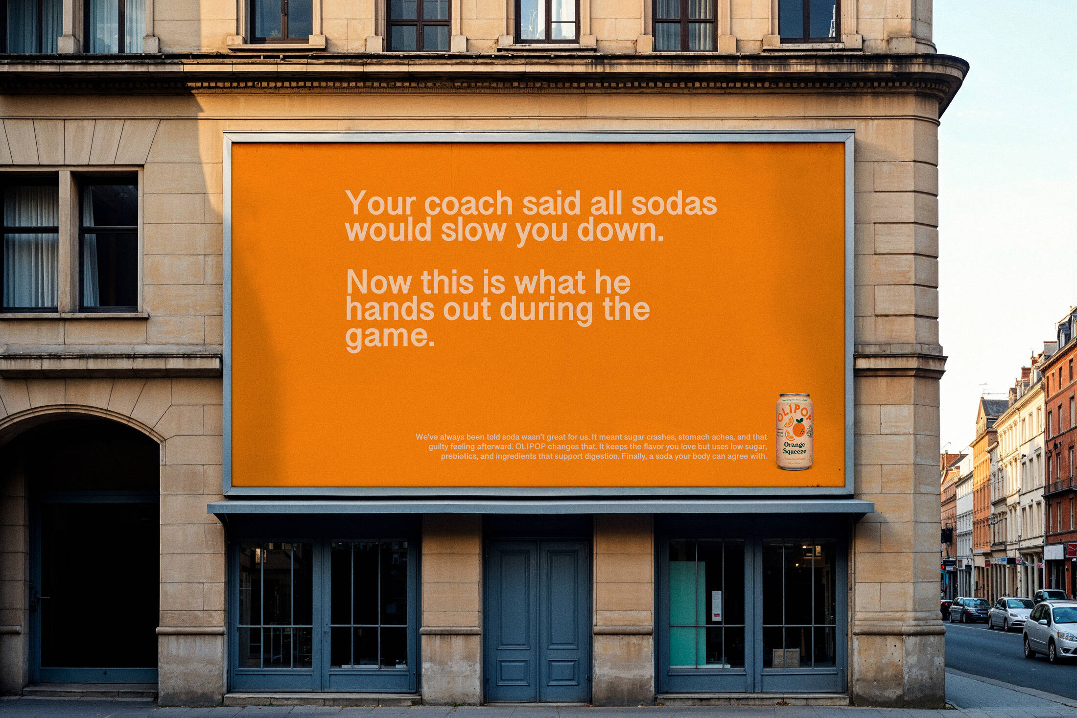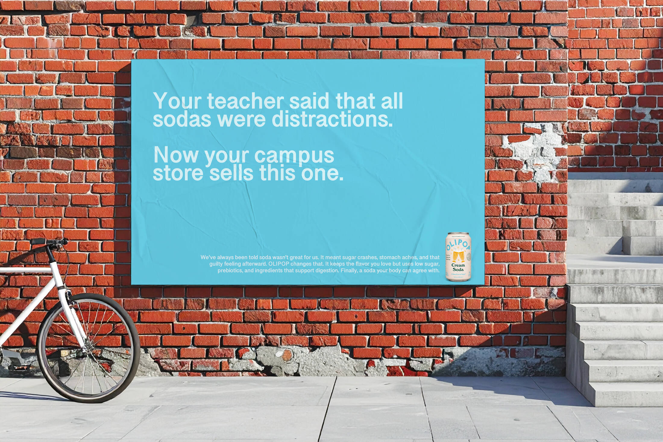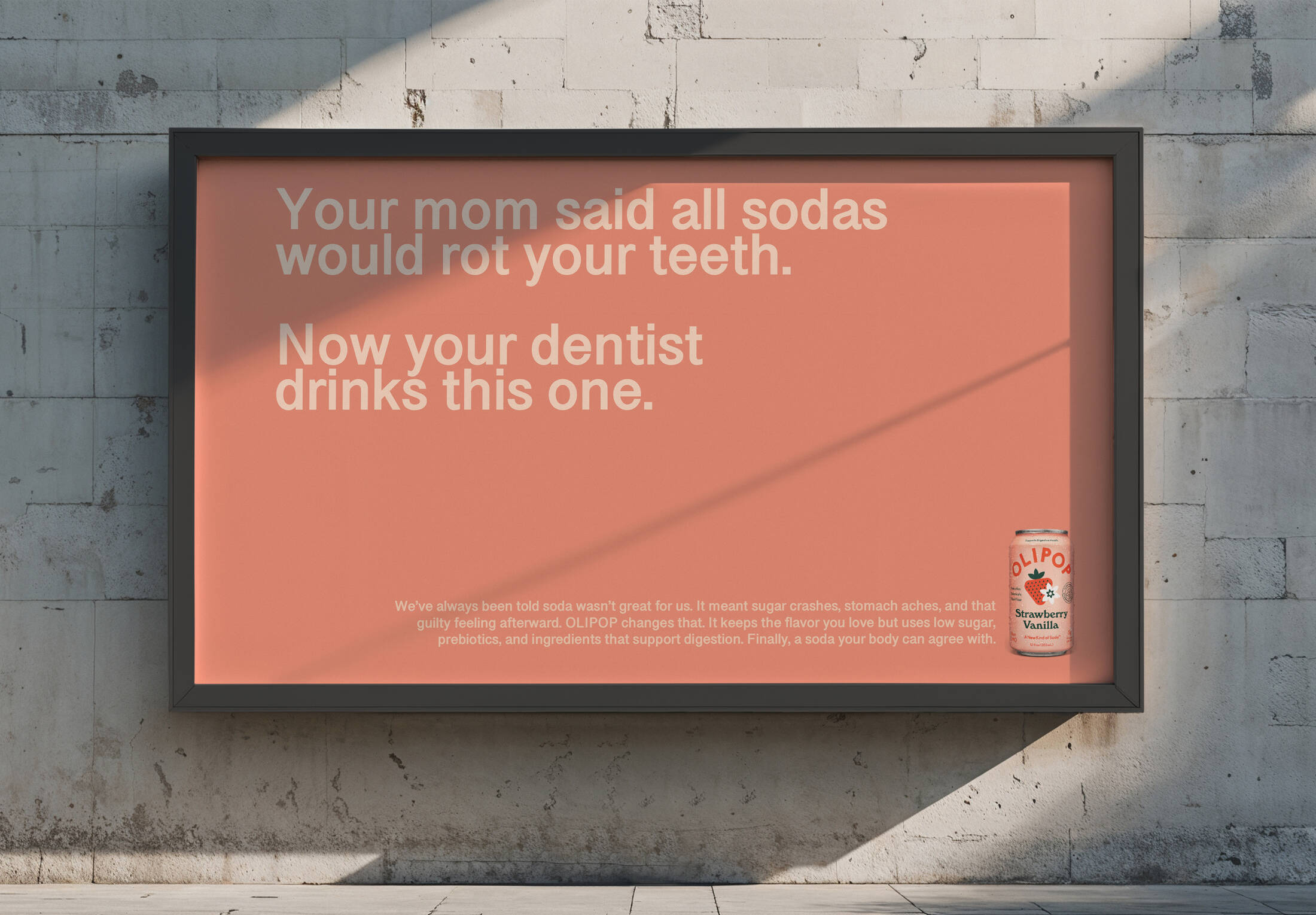 This student campaign titled 'Soda Rules Rewritten' was published in United States in December, 2025. It was created for the brand: OLIPOP, by ad school: S.I. Newhouse School of Public Communications. This OOH Outdoor and Print media campaign is related to the Drinks (Non Alcoholic) industry and contains 4 media assets. It was submitted about 11 hours ago.