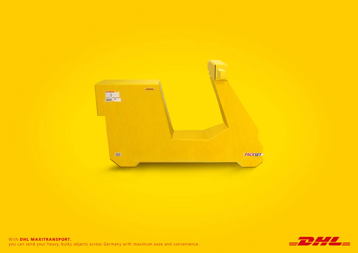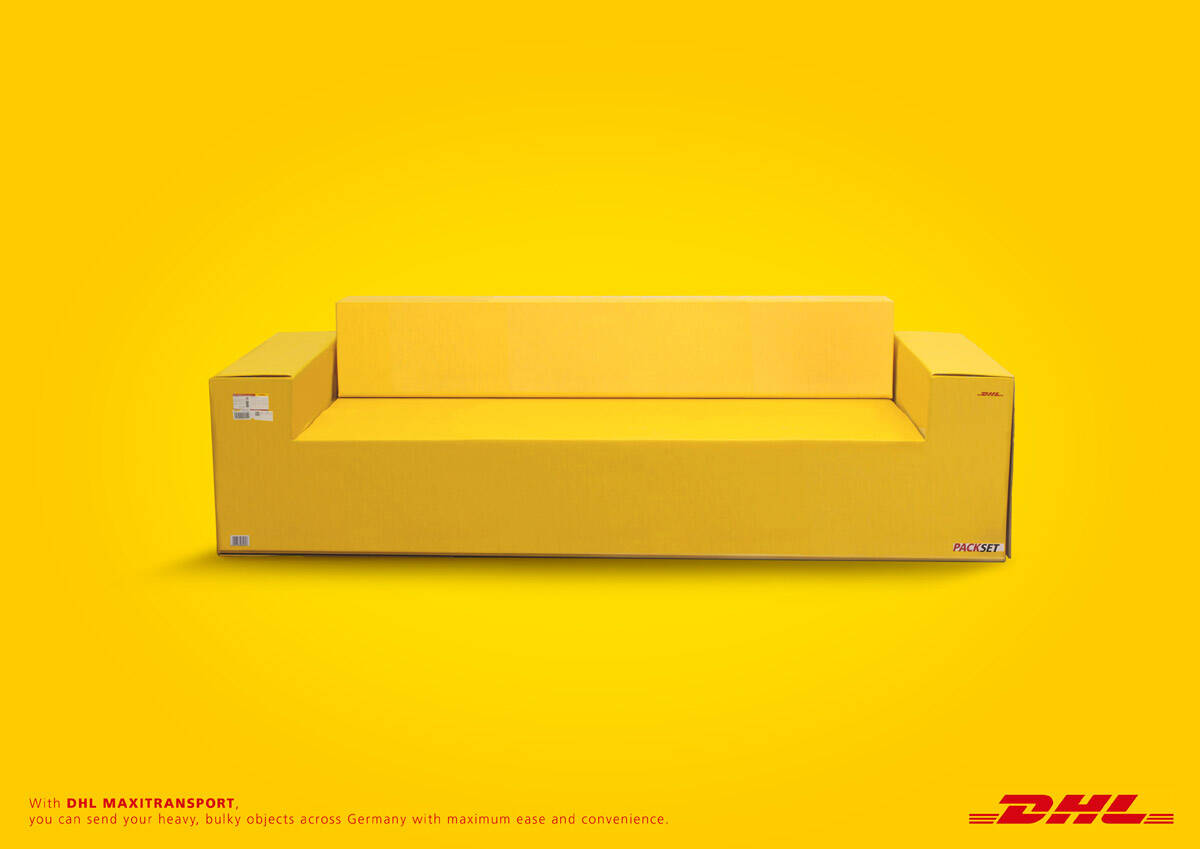 This professional campaign titled 'Sofa, Moped, Piano' was published in Germany in March, 2009. It was created for the brand: DHL, by ad agency: European school of design. This Print medium campaign is related to the Transport industry and contains 3 media assets. It was submitted over 16 years ago.