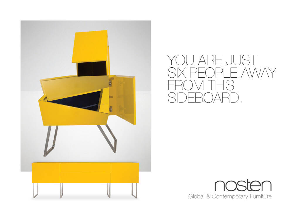 This professional campaign titled 'Sofa, Chair, Table, Black, Yellow' was published in Argentina in February, 2009. It was created for the brand: Nosten, by ad agency: Communion. This Print medium campaign is related to the House, Garden industry and contains 5 media assets. It was submitted almost 17 years ago.