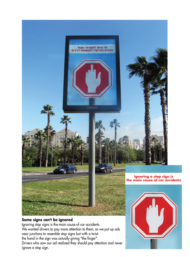 This professional campaign titled 'Some signs can't be ignored' was published in Israel in January, 2012. It was created for the brand: JCDecaux, by ad agency: Y&R. This OOH Outdoor medium campaign is related to the Media industry and contains 1 media asset. It was submitted almost 14 years ago.