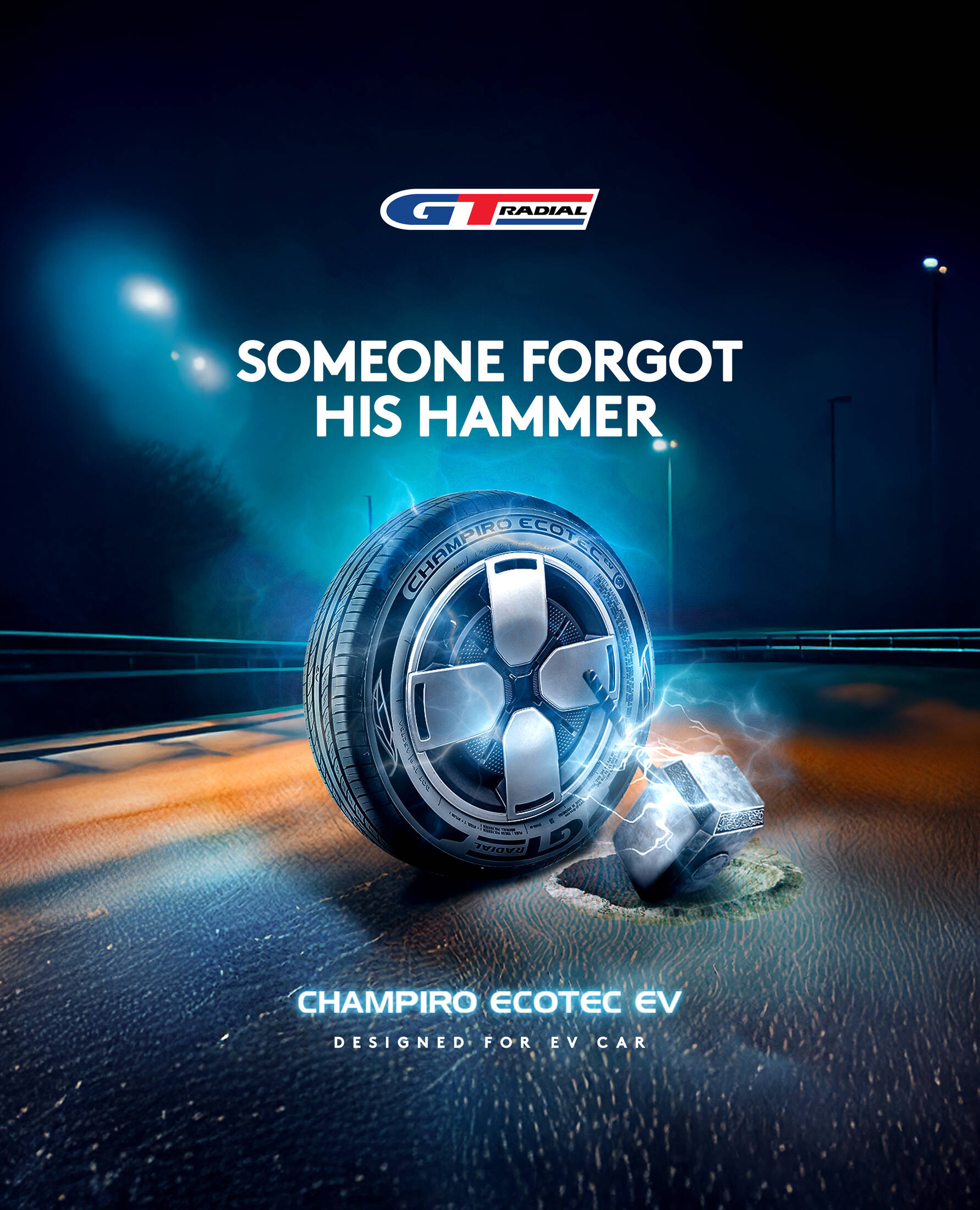 n 2023, GT Radial launched a campaign to introduce its latest tire, specifically designed for electric four-wheeled vehicles. To make the campaign more engaging and memorable, the concept took a playful approach by featuring the God of Thunder (Thor)—a character famously associated with his mighty hammer, often depicted as an electrified weapon.