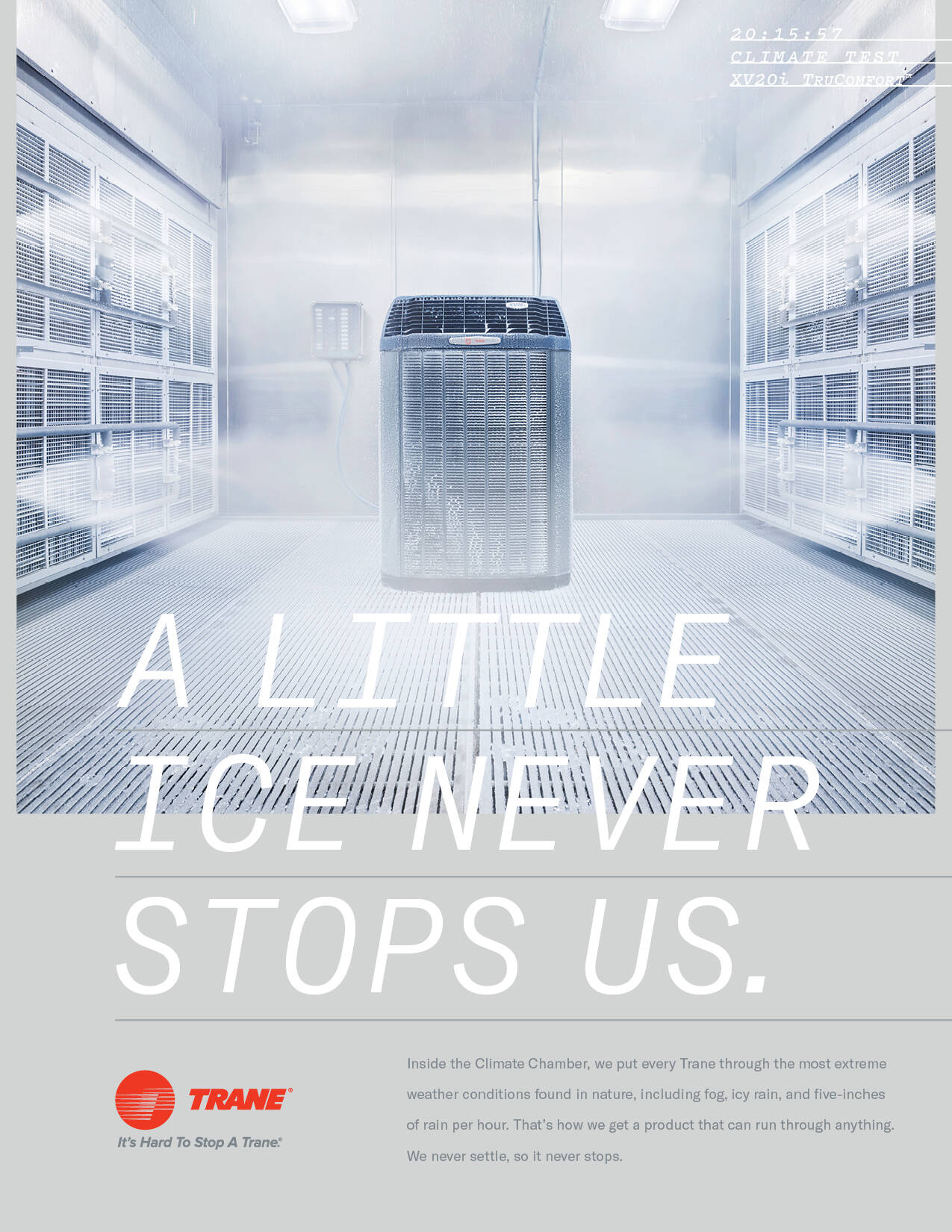 This professional campaign titled 'Sound, Snow, Frozen Rain' was published in United States in July, 2017. It was created for the brand: Trane, by ad agency: Young & Laramore. This Print medium campaign is related to the Electronics, Technology industry and contains 3 media assets. It was submitted over 8 years ago.