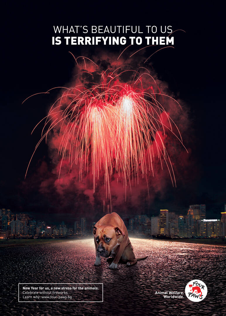 Animals perceive the sound of fireworks as a realistic threat. Our pets spend the first hours of every new year stressed and terrified by the sound of explosions people think are oh so pretty.