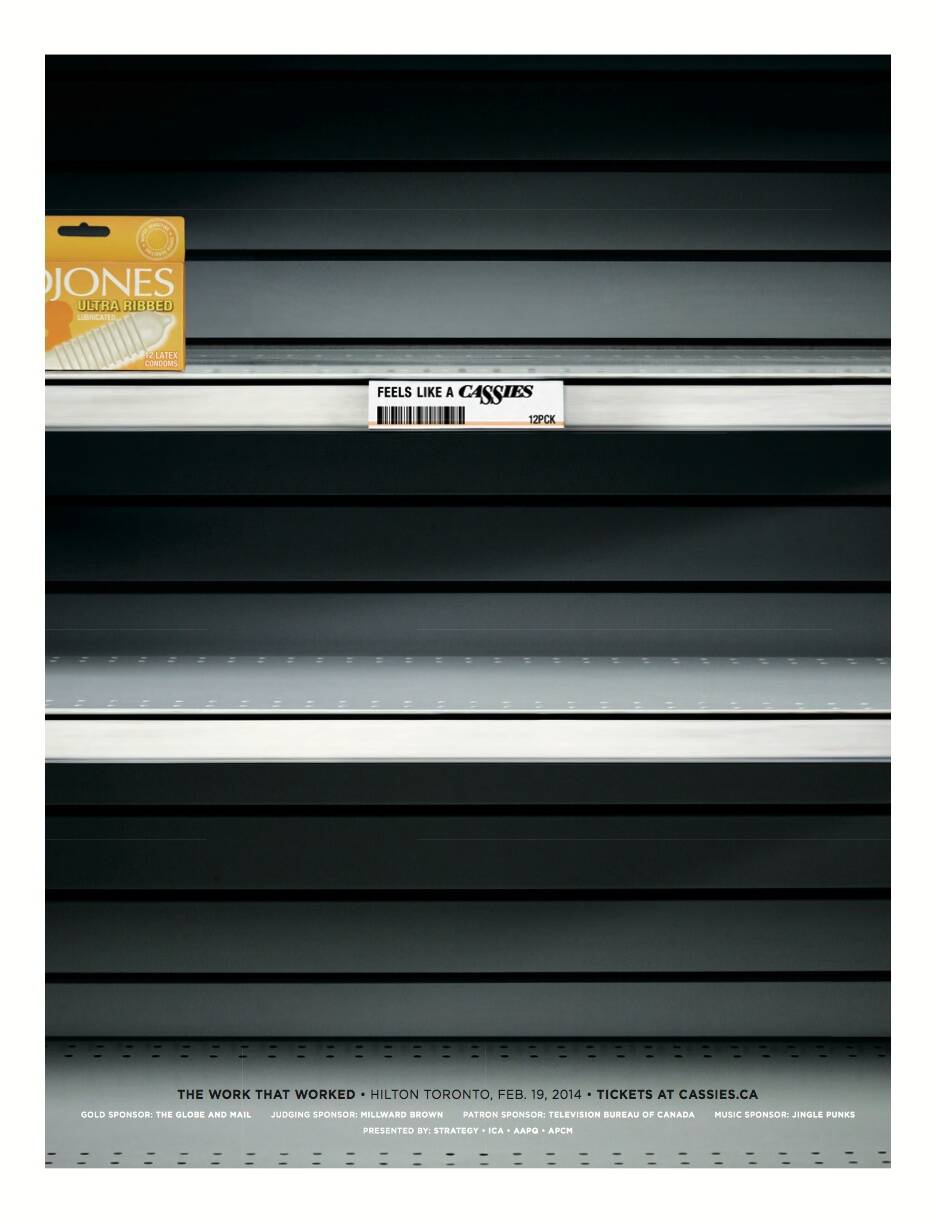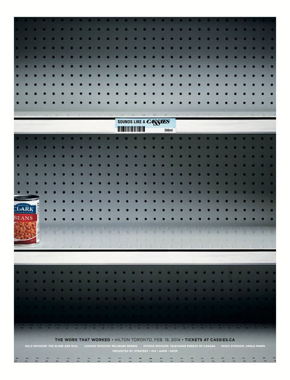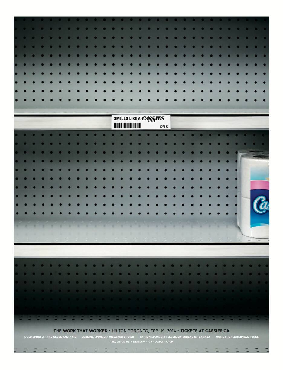 This professional campaign titled 'Sounds, Smells, Feels' was published in Canada in December, 2013. It was created for the brand: Cassies, by ad agency: Taxi. This Print medium campaign is related to the Media industry and contains 3 media assets. It was submitted almost 12 years ago.