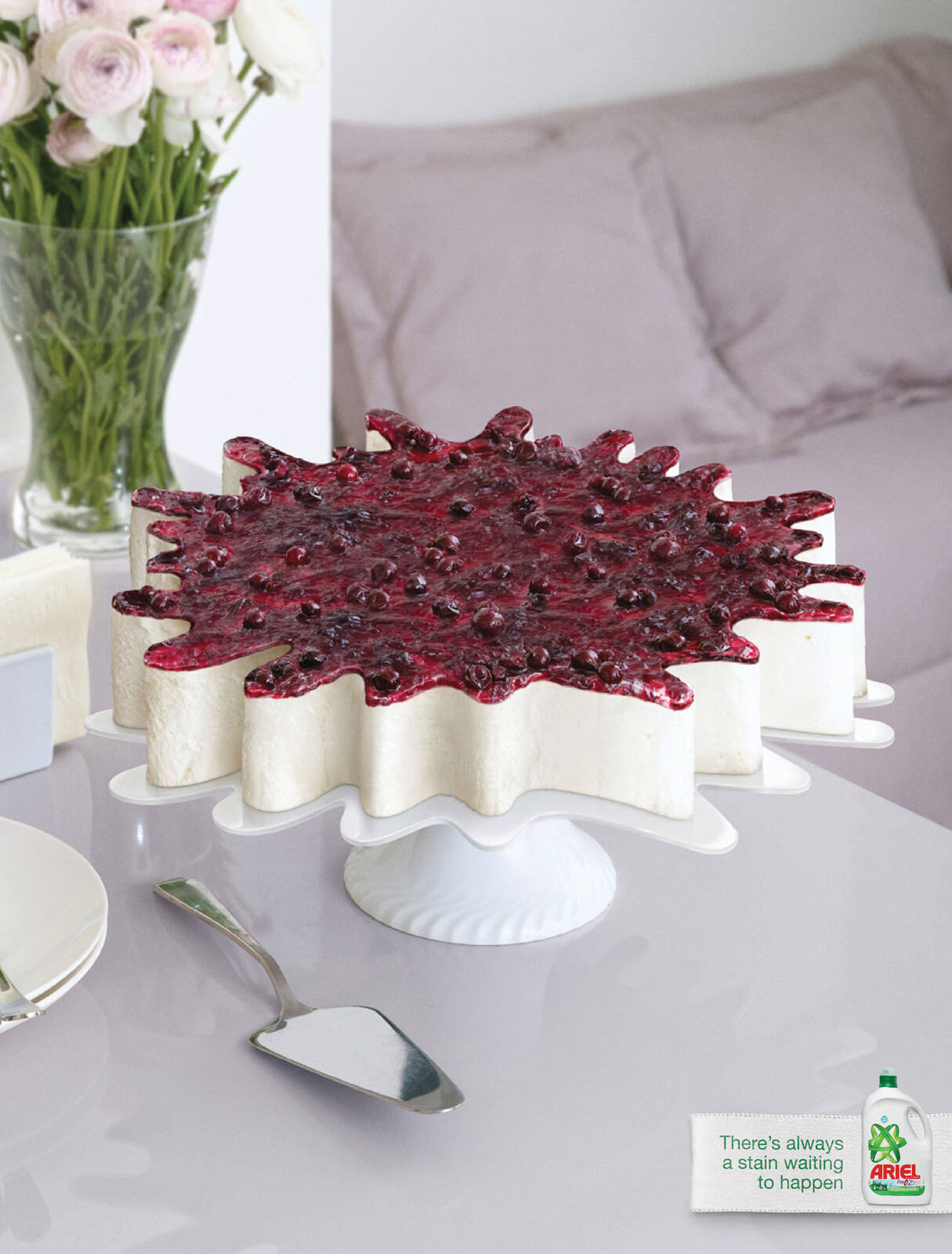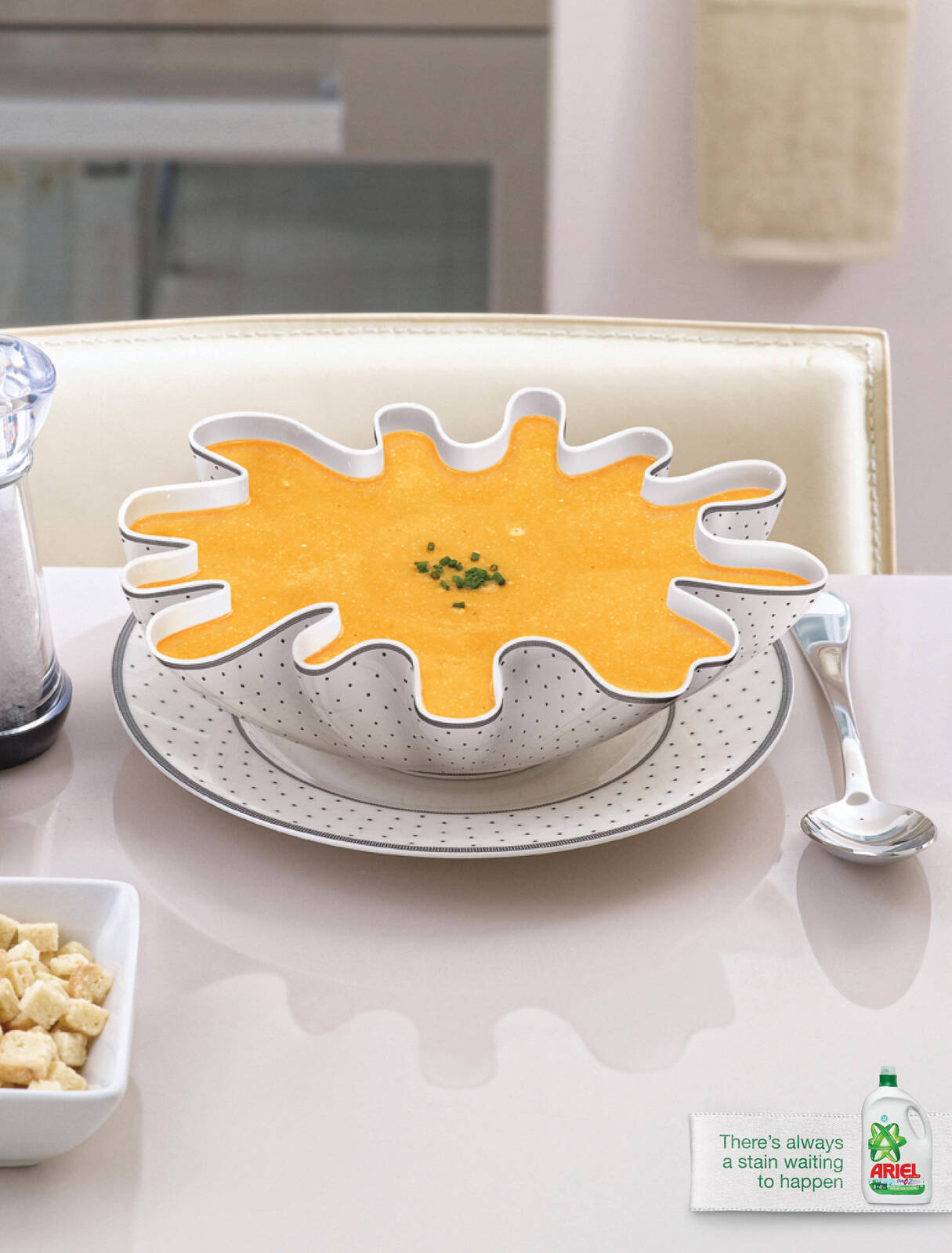 This professional campaign titled 'Soup, Cake' was published in Israel in May, 2011. It was created for the brand: Ariel, by ad agency: Saatchi & Saatchi. This Print medium campaign is related to the House, Garden industry and contains 2 media assets. It was submitted over 14 years ago.