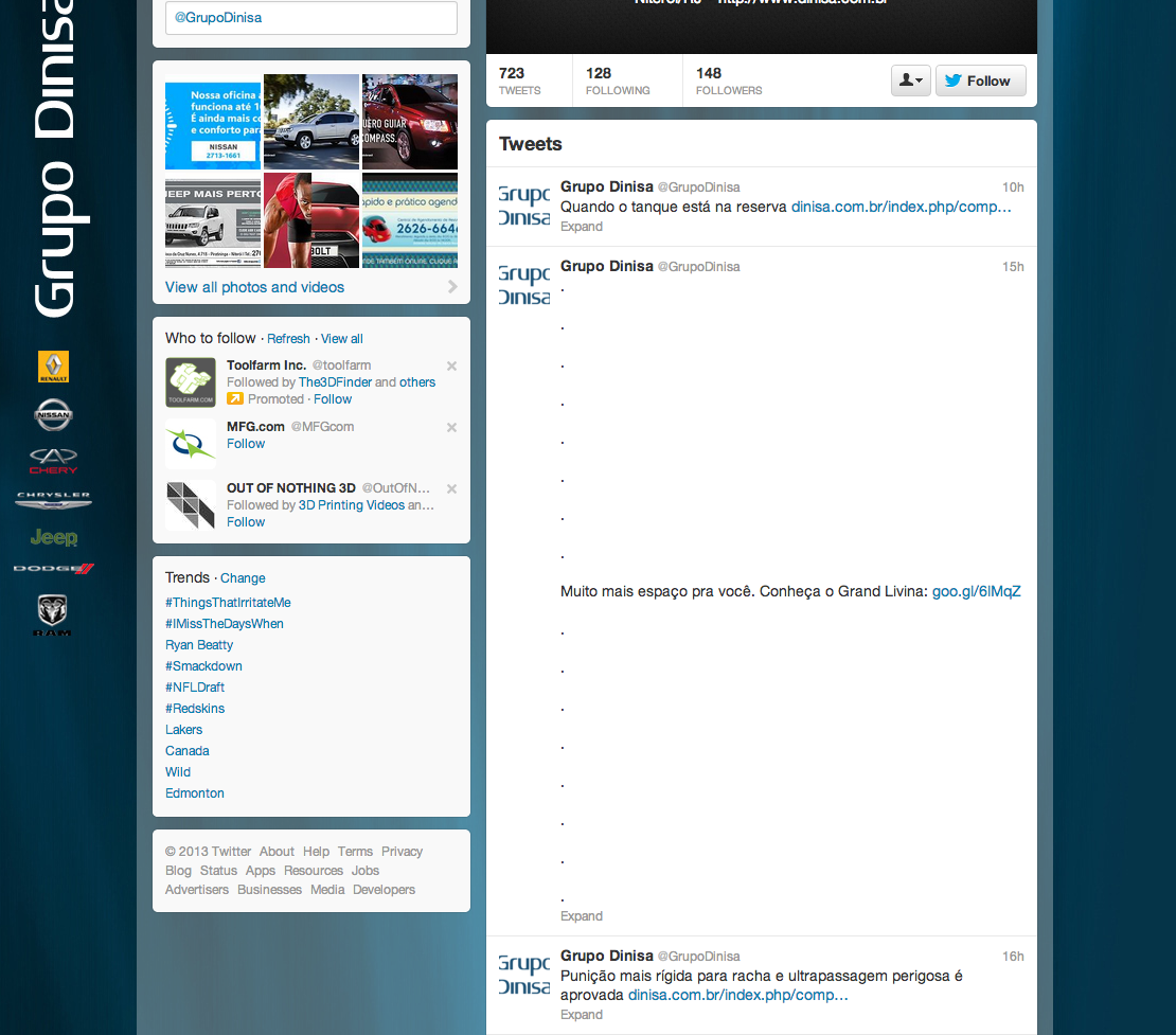 This professional campaign titled 'Spacious Tweet' was published in Brazil in April, 2013. It was created for the brand: Nissan, by ad agency: PS10. This Digital medium campaign is related to the Automotive and Personal Transportation industry and contains 1 media asset. It was submitted over 12 years ago.