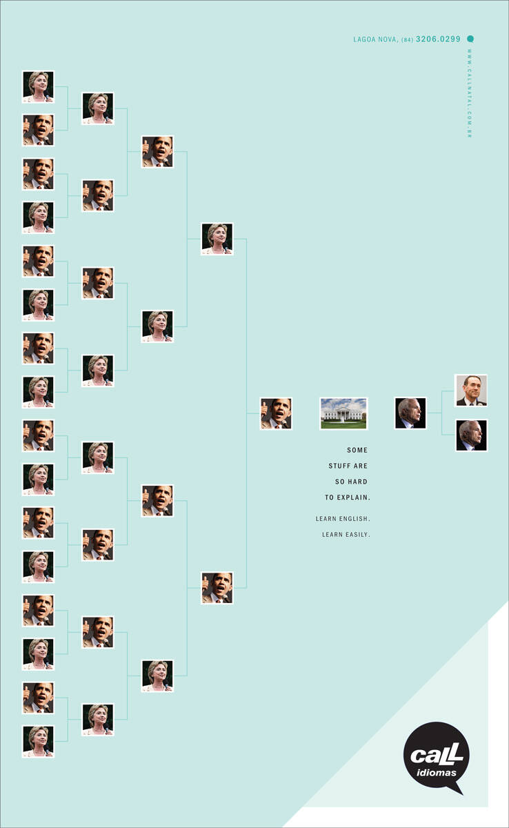 This professional campaign titled 'Spain, Politics' was published in Brazil in June, 2008. It was created for the brand: Call Idiomas, by ad agency: Art&C. This Print medium campaign is related to the Education industry and contains 2 media assets. It was submitted over 17 years ago.