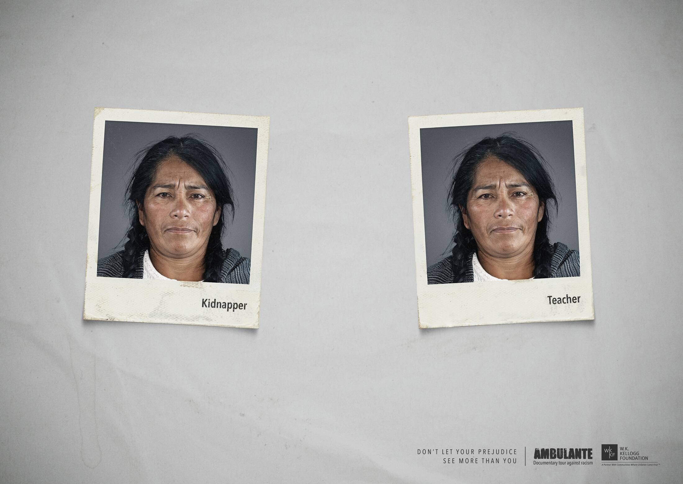 "Prejudices" encourages one to reflect before judging. It simply questions and invites the public to listen, with the premise that behind what our initial prejudice is showing us there is a person who has something to say and offer. A social campaign that makes people aware that discrimination is not only a problem for minorities.