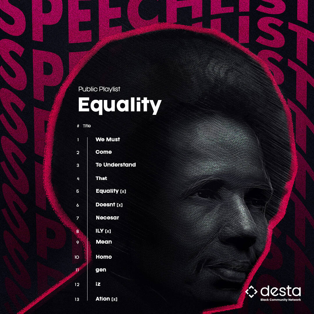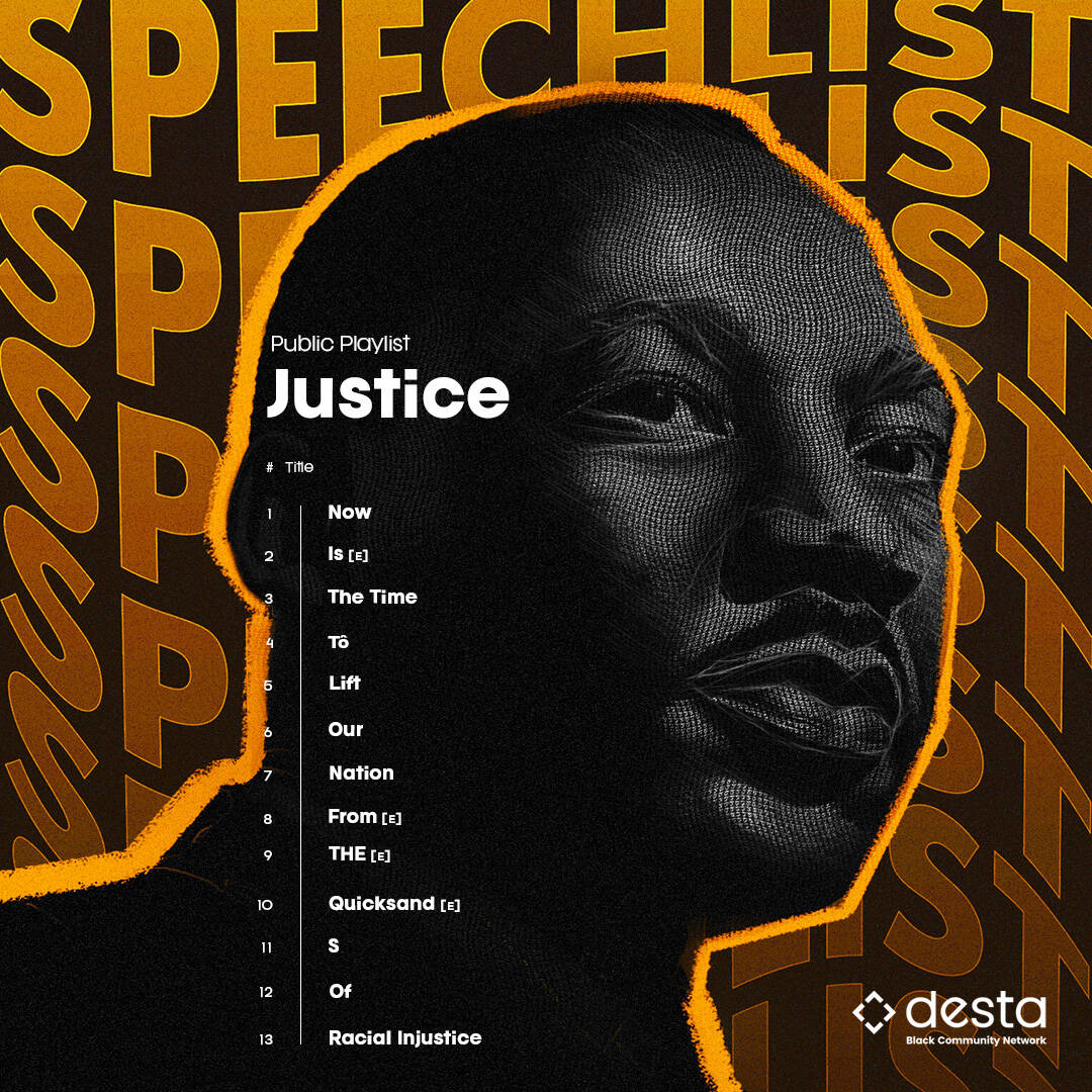 "Speechlist" strategically leverages Spotify to recreate historical yet relevant speeches from the Civil Rights Movement through curated playlists, featuring tracks by today’s Black musicians and artists. Aligned with DESTA’s mission of empowering the Black community to transform barriers into opportunities, “Speechlist” serves the dual purpose of amplifying the voices of iconic figures who fought for justice and equality while simultaneously enhancing the visibility of Black talent.