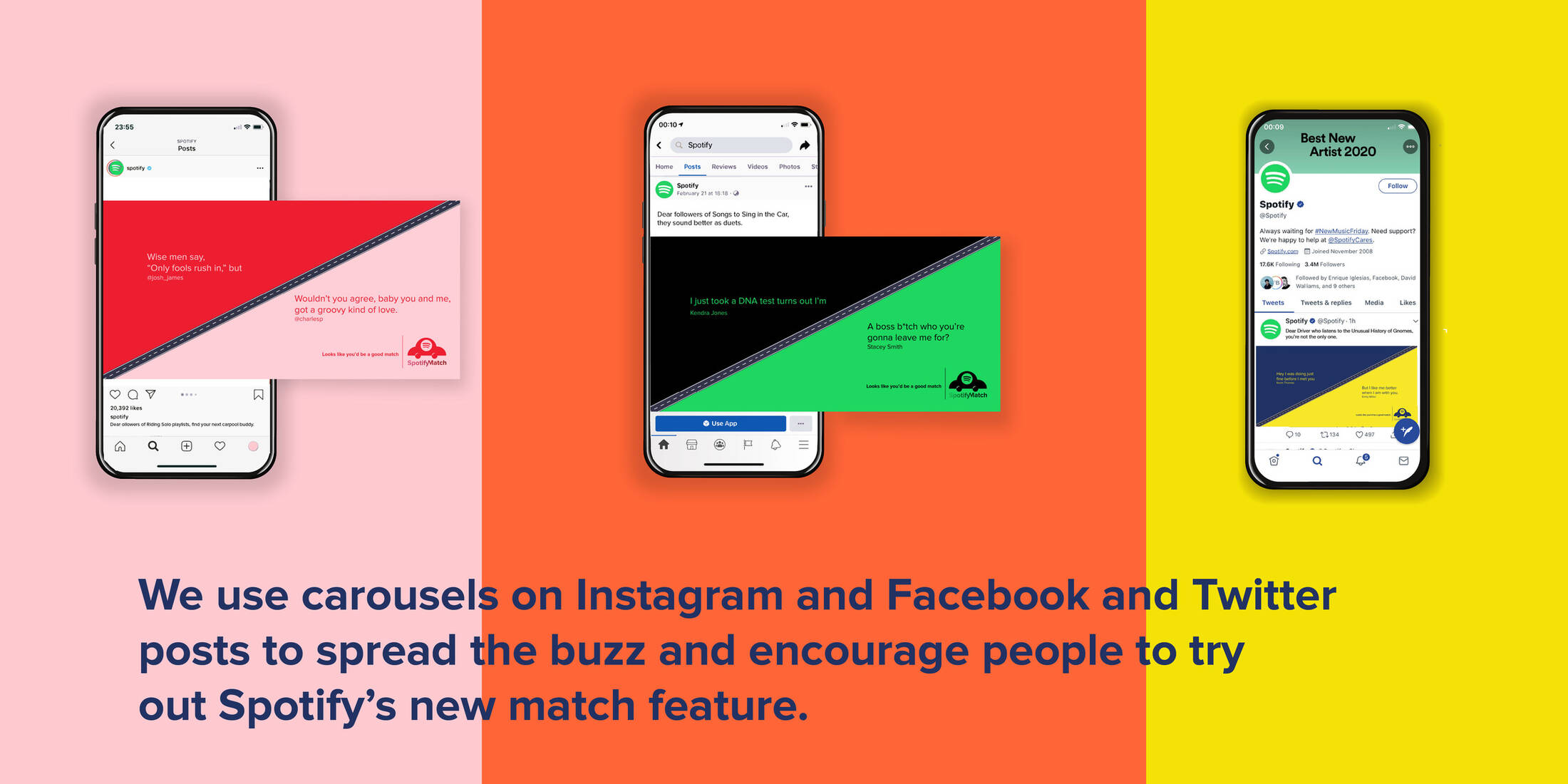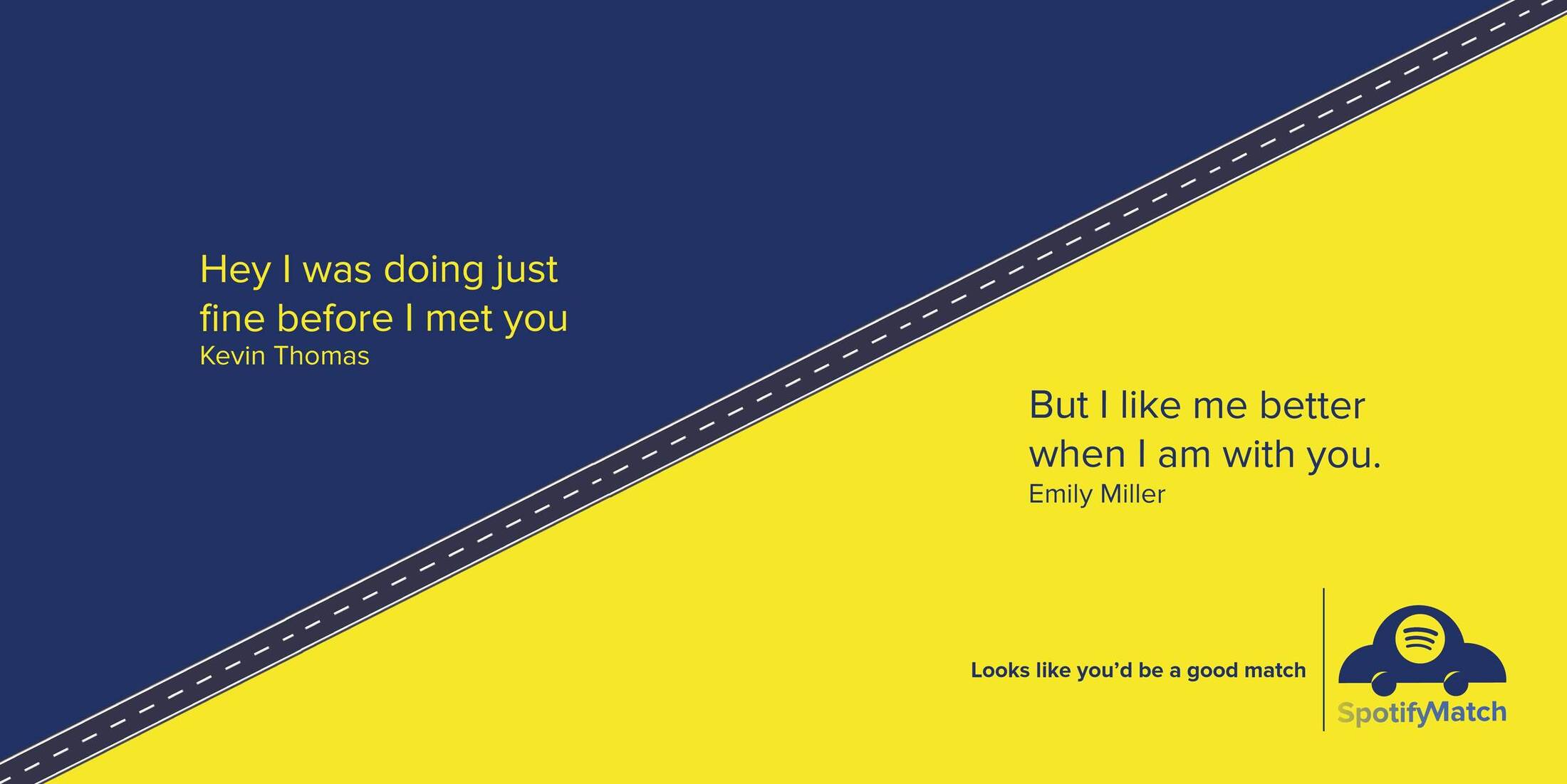 This student campaign titled 'Spotify Match' was published in India in May, 2020. It was created for the brand: Spotify, by ad school: Miami Ad School. This Integrated medium campaign is related to the Electronics, Technology and Music industries and contains 7 media assets. It was submitted over 5 years ago by Miss: Palak Kapadia of Miami Ad School.