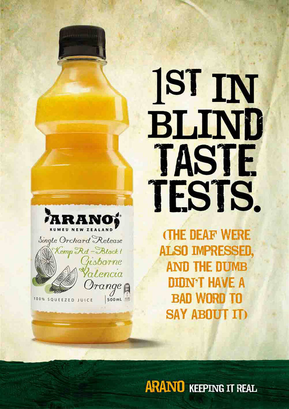 This professional campaign titled 'Squeezers, Blind taste test' was published in Australia in March, 2009. It was created for the brand: Arano, by ad agency: Zephyr WPD. This Print medium campaign is related to the Drinks (Non Alcoholic) industry and contains 2 media assets. It was submitted over 16 years ago.