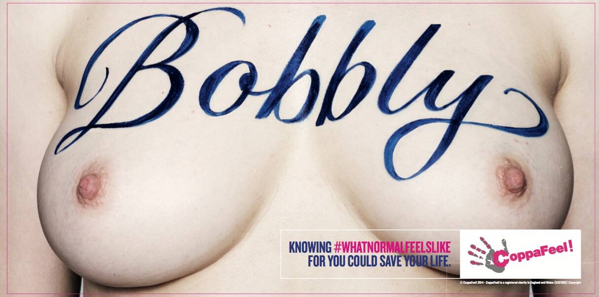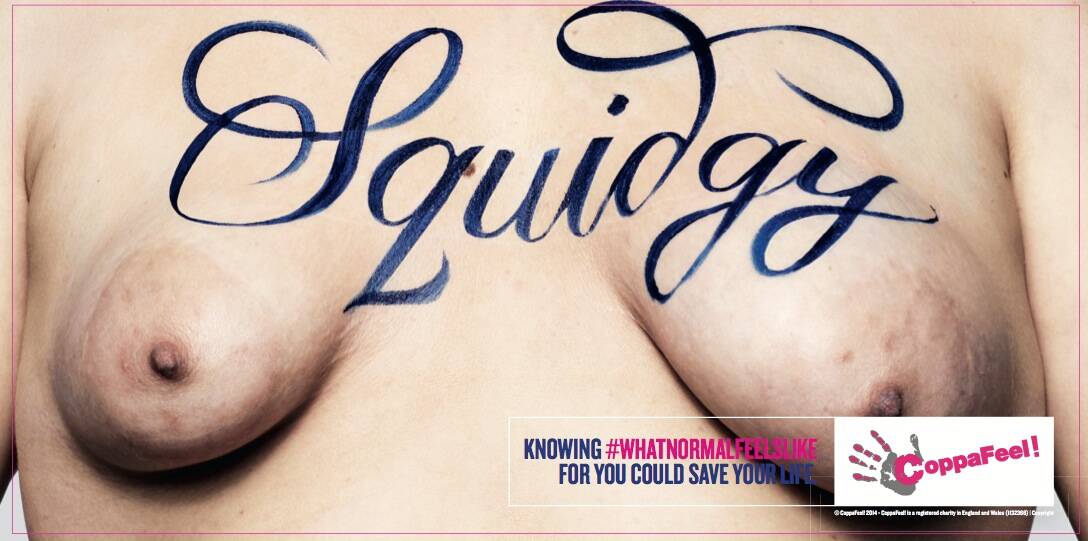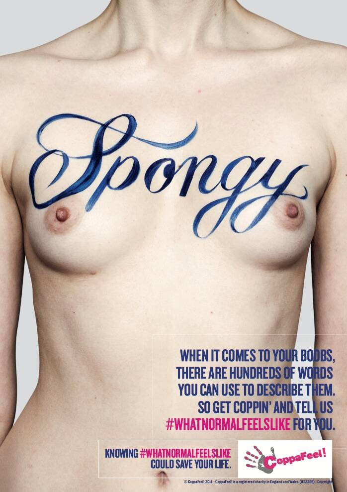 This NSFW professional campaign titled 'Squidgy, Spongy, Sensitive, Peachy, Firm, Doughy, Bobbly' was published in United Kingdom in September, 2014. It was created for the brand: CoppaFeel!, by ad agency: Karmarama. This Print medium campaign is related to the Public Interest industry and contains 7 media assets. It was submitted about 11 years ago.