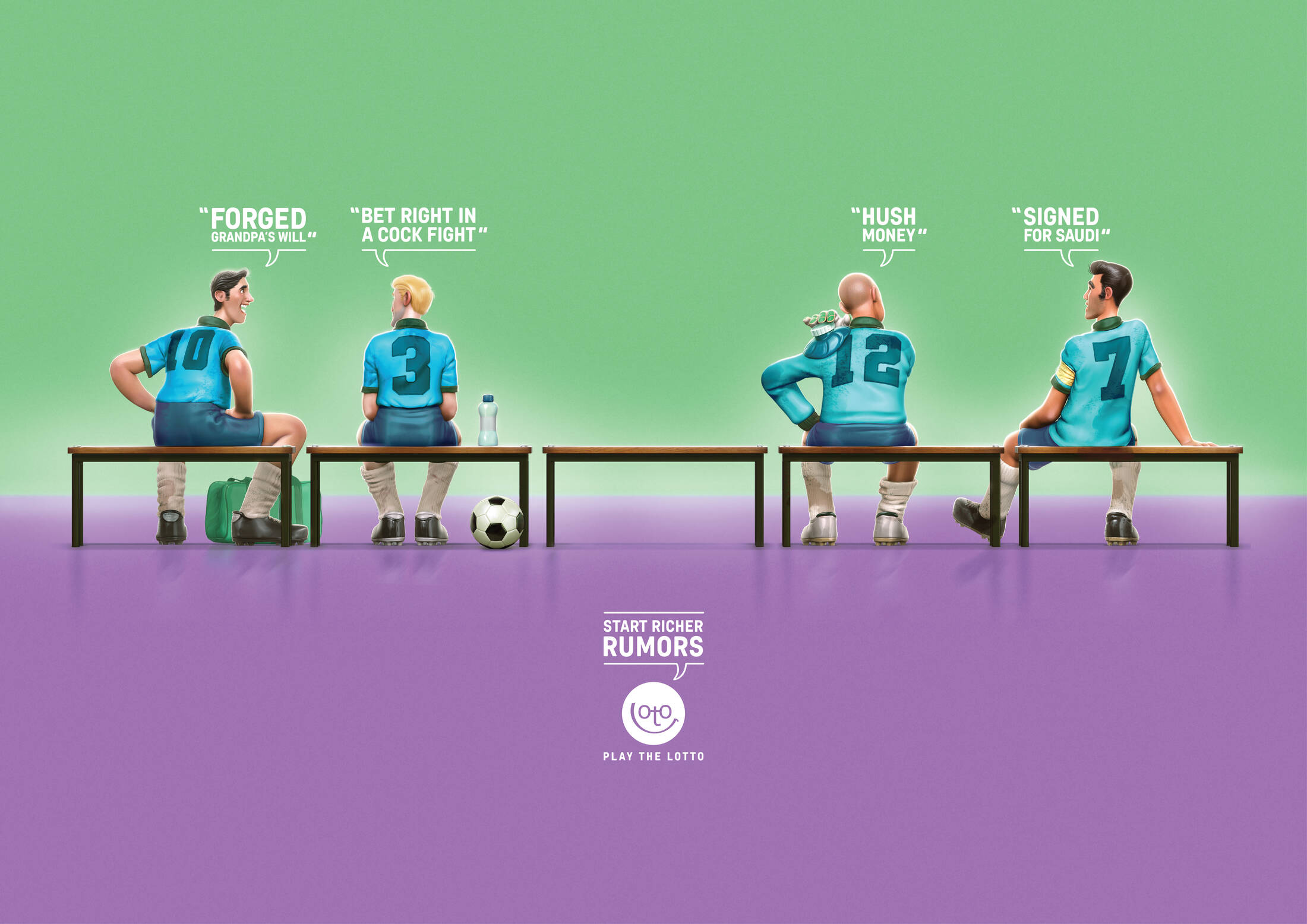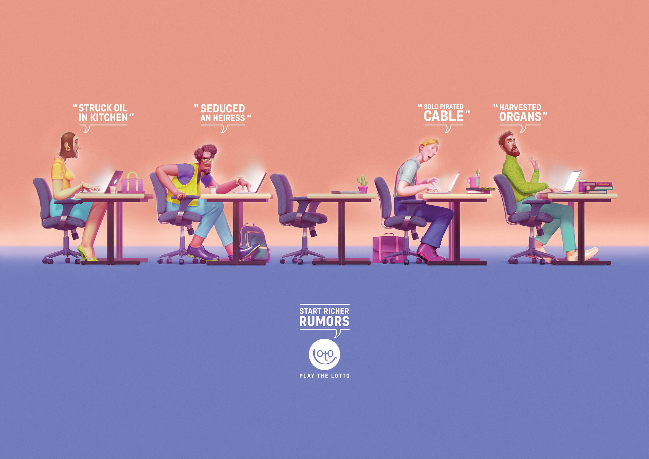 This professional campaign titled 'Start Richer Rumors' was published in Lebanon and United Arab Emirates in January, 2023. It was created for the brand: Loto Libanais, by ad agency: Impact BBDO. This OOH Outdoor and Print media campaign is related to the Gambling industry and contains 4 media assets. It was submitted almost 2 years ago by Creative Director: Dennis Silveira of Impact BBDO.