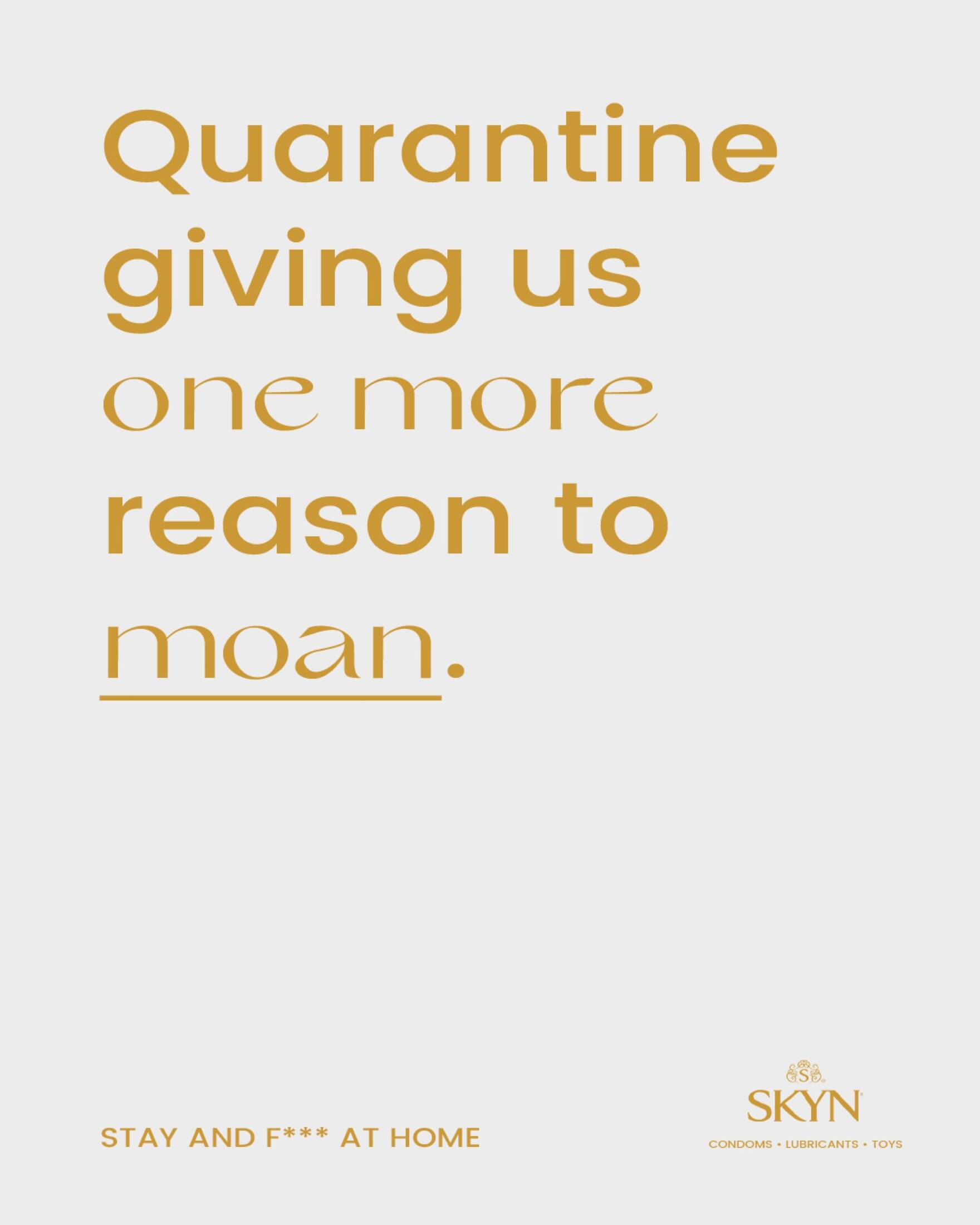 To share their message, SKYN® is reaching out where everyone is living, online. The brand will be publishing content featuring messages like, “Coming is always safer than going”, compelling people to ‘Stay And F*** At Home’ in order to keep everyone safer. This initiative advocates for ways to make the best of the situation and reminds us that we can turn restrictive measures into something that brings us together.