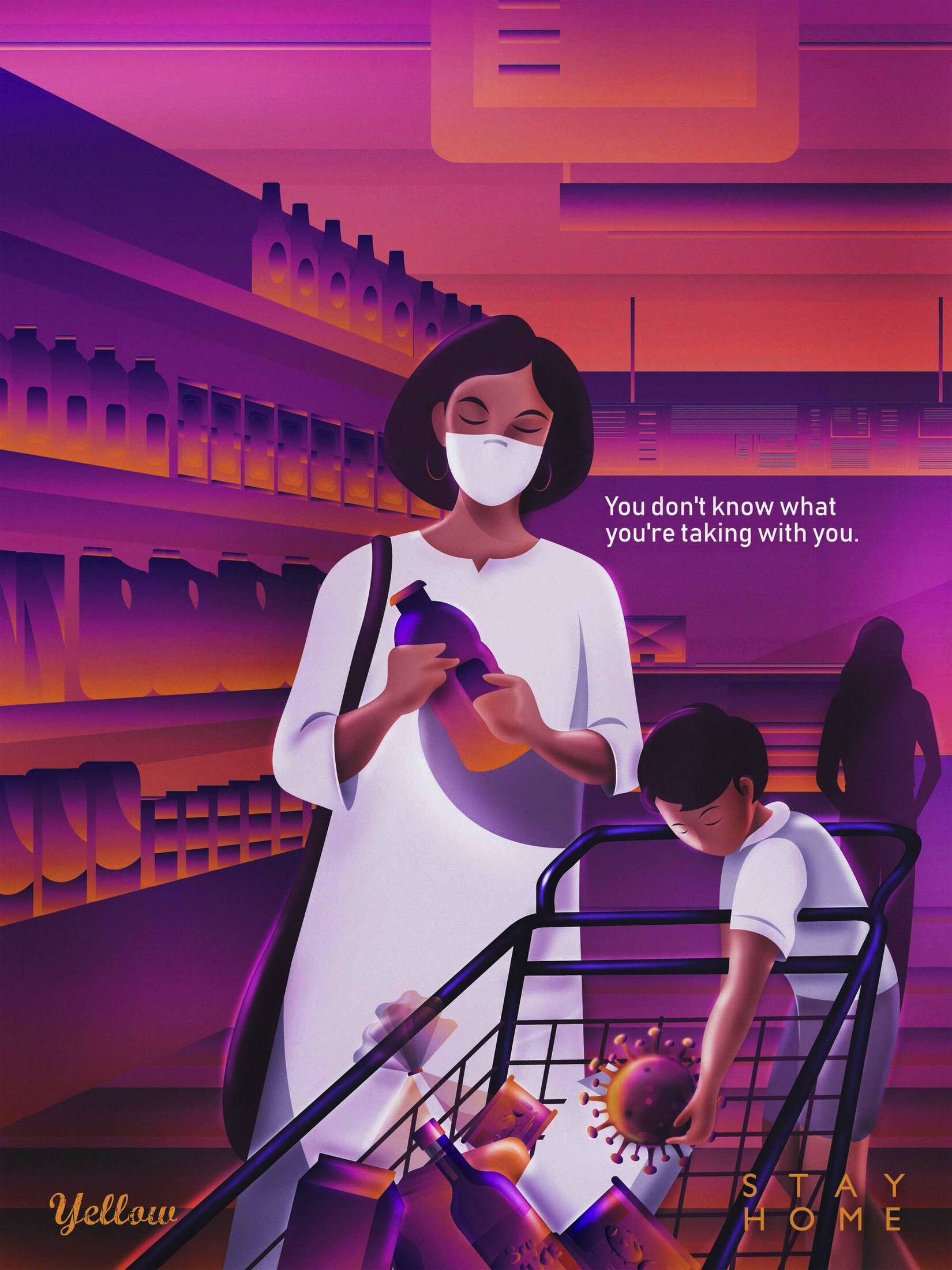Our designs speak about the importance of physical distancing in helping to prevent the spread of COVID-19. Rather than just telling people how it’s done, we wanted to display the intensity and seriousness of the situation with the help of this creative series that puts forth everyday instances. We’ve been told to stay in for ourselves and for our families but yet such appeals fail to get the recognition it needs. These creatives simply state that the virus is EVERYWHERE and to save yourself as well as others, the best destination for you is home.