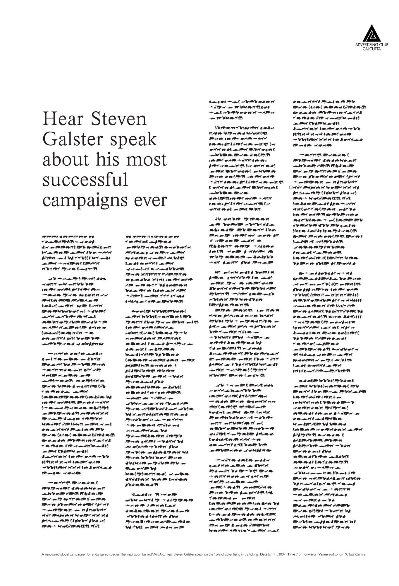 Every month Ad club Kolkata invites eminent people to talk about creativity to the advertising fraternity. This time it was Steven Galster who's a very successful animal rights campaigner in South East Asia. The challenge was to get the advertising people to the venue although the evening was not about advertising totally. It was a full house and the ad got a few metals too.