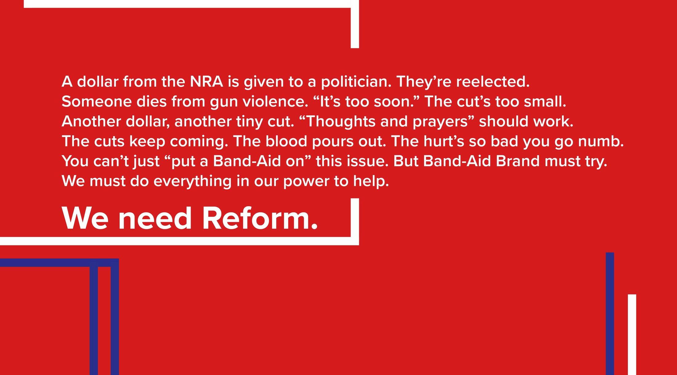 Parents and teachers alike trust BAND-AID to heal kids' boo-boos. But every eight days, children experience the hurt a bandage can't fix. Until now. BAND-AID Brand is healing the greatest issue American children are forced to deal with: gun violence.