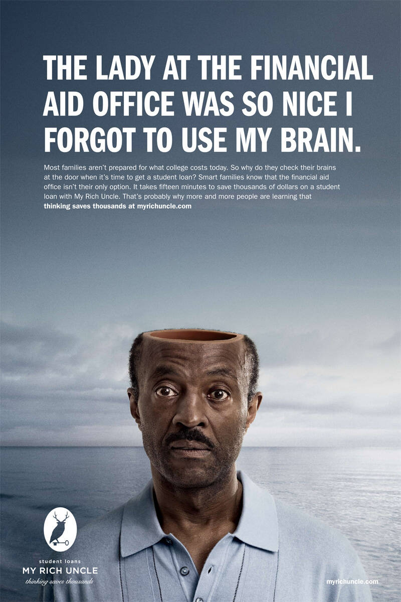 This professional campaign titled 'Straight, Saving, Instead, Lady' was published in United States in June, 2008. It was created for the brand: MyRichUncle, by ad agency: SS+K. This Print medium campaign is related to the Finance industry and contains 4 media assets. It was submitted over 17 years ago.