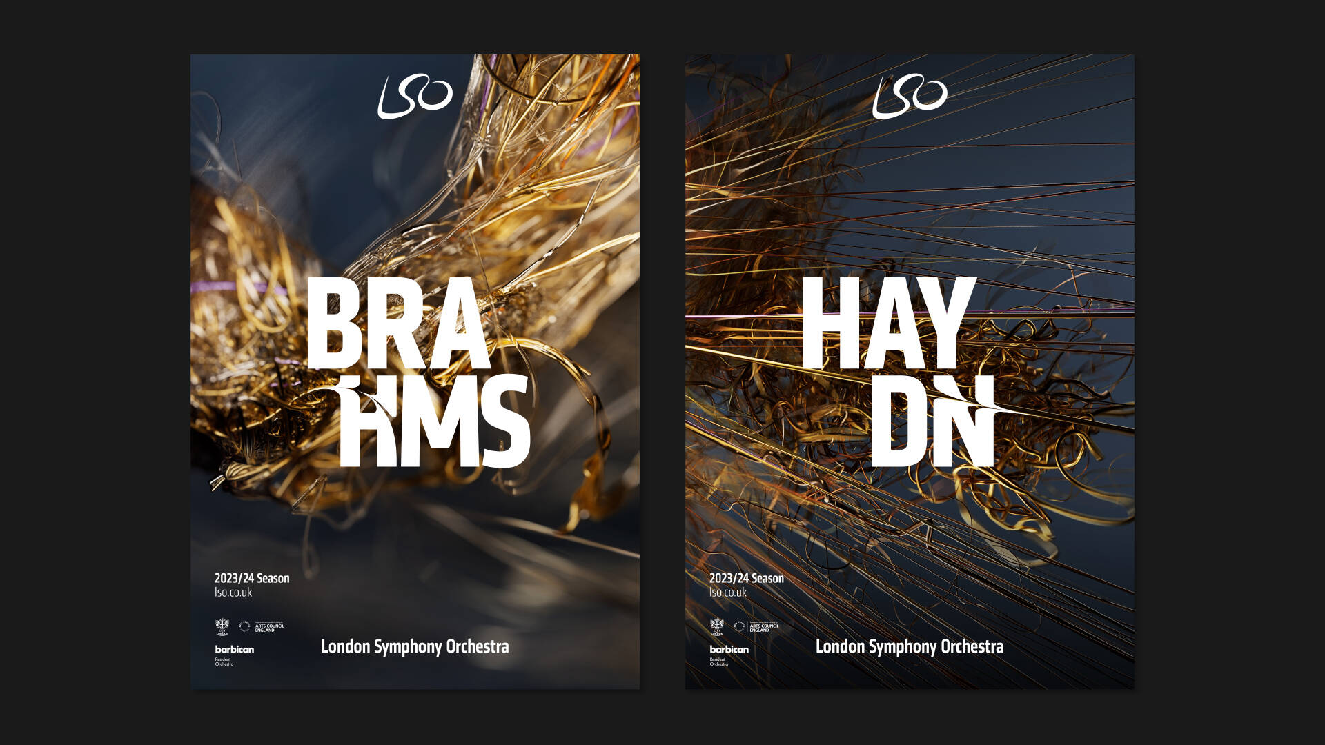 The London Symphony Orchestra’s (LSO) 2023/2024 season campaign, which shines a spotlight on the individual musicians within the LSO, and the intense connection they have with their conductors. "Strung together" marks the launch of a new LSO season at London’s Barbican Centre and LSO St Luke’s, with an ambitious series of concerts presented featuring the LSO’s growing family of artists and conductors.