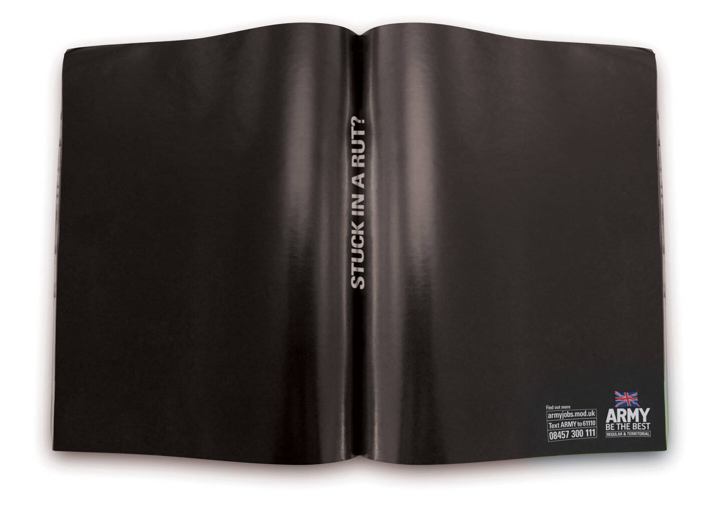 This professional campaign titled 'Stuck in a rut?' was published in United Kingdom in May, 2008. It was created for the brand: Army, by ad agency: Publicis. This Print medium campaign is related to the Other industry and contains 1 media asset. It was submitted over 17 years ago.