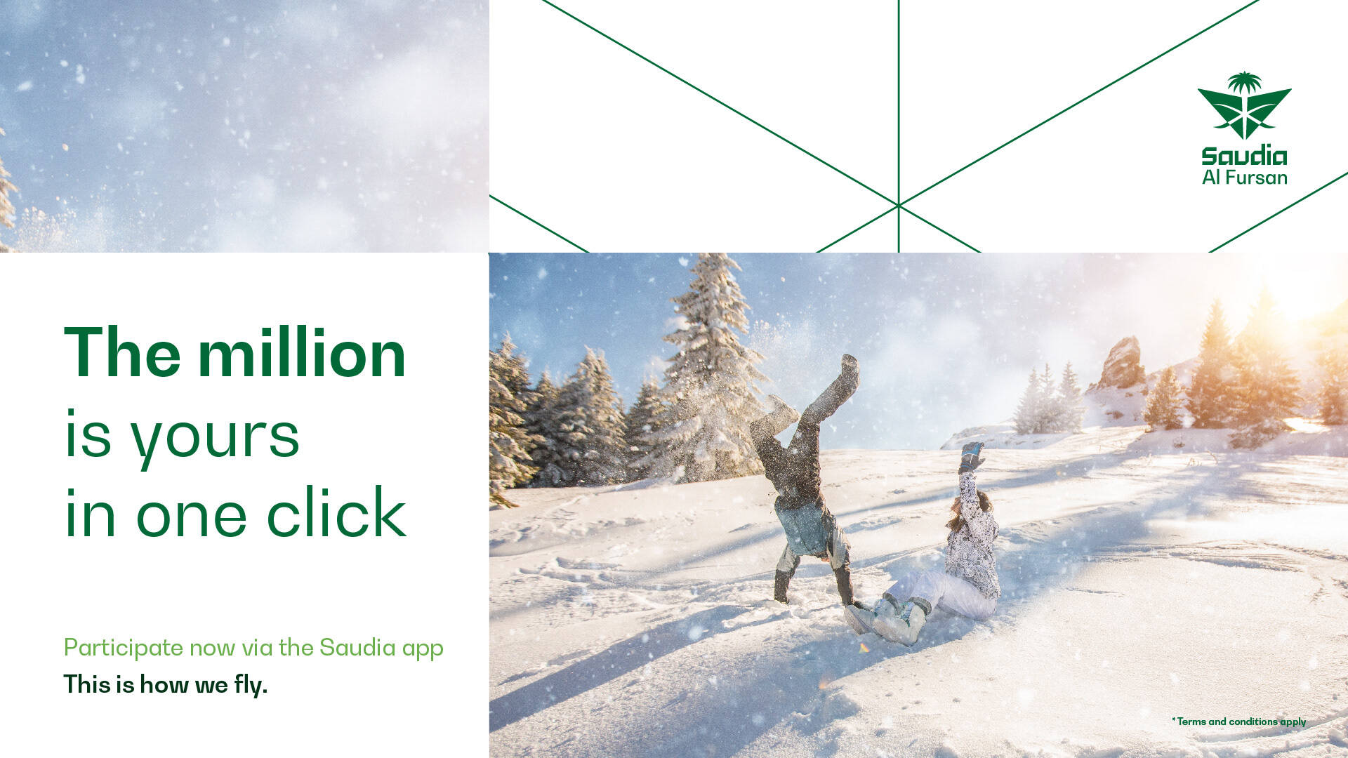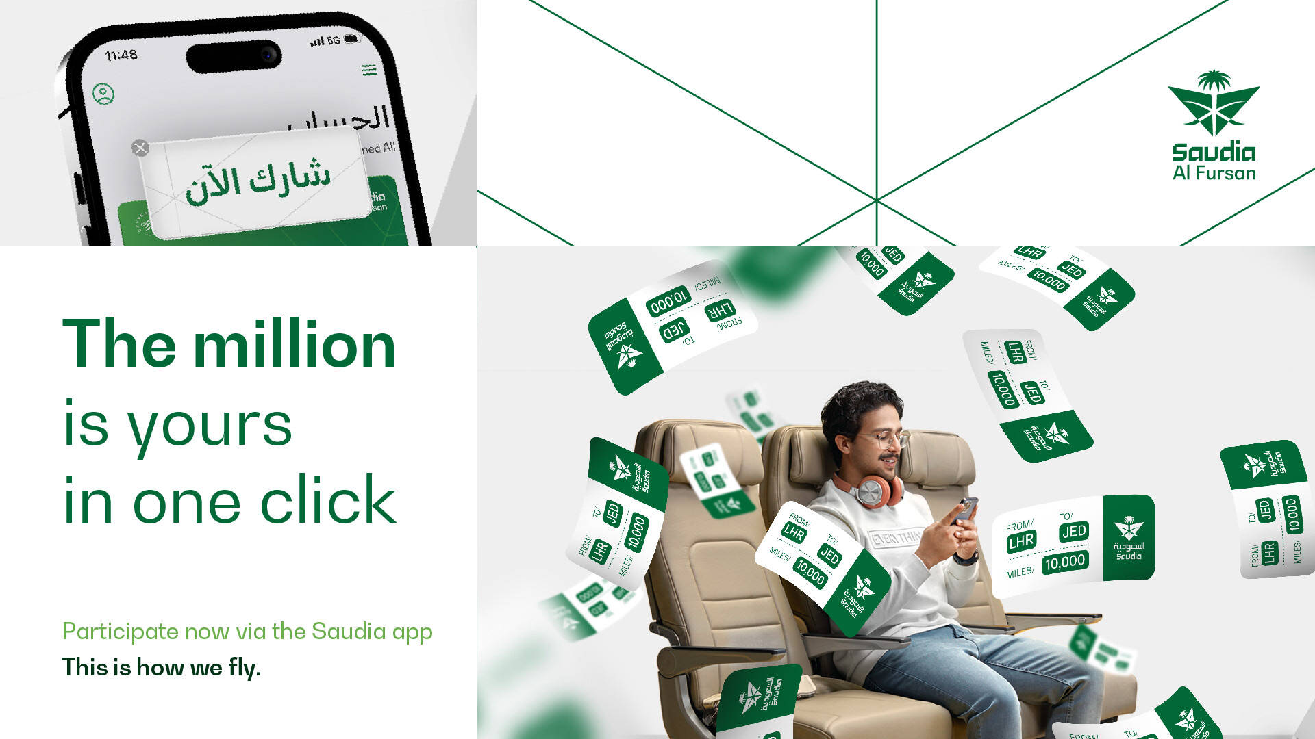 The journey to a million miles is waiting behind every smartphone of every eligible individual in Saudi Arabia. The journey isn’t just the physical one you take by winning the miles, it’s the process of getting there. It’s the culmination of every decision taken by you to sign up, every thought that goes into winning, every idea you have waiting for the results to come out. The journey is more than the destination… And the lucky winners get to have both.