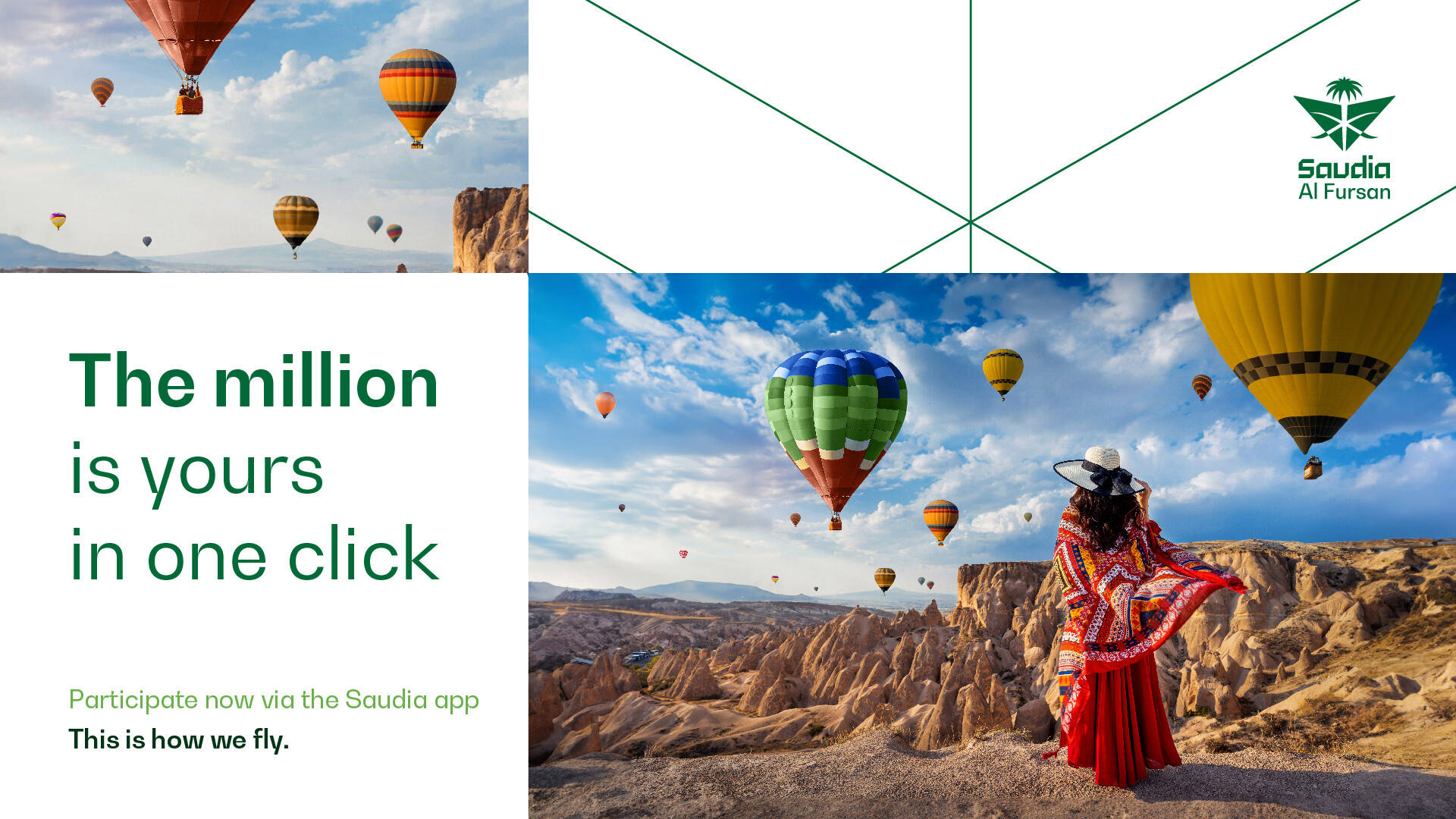 This professional campaign titled 'Suadia AlFursan: The million is yours ' was published in Saudi Arabia in November, 2023. It was created for the brands: Saudia and Saudia Airlines, by ad agency: Leo Burnett. This Digital, OOH Outdoor, and Static Images media campaign is related to the Automotive and Personal Transportation, Transport, and Travel and Tourism industries and contains 7 media assets. It was submitted 5 months ago by Art Director: Salah Jandali of Leo Burnett.