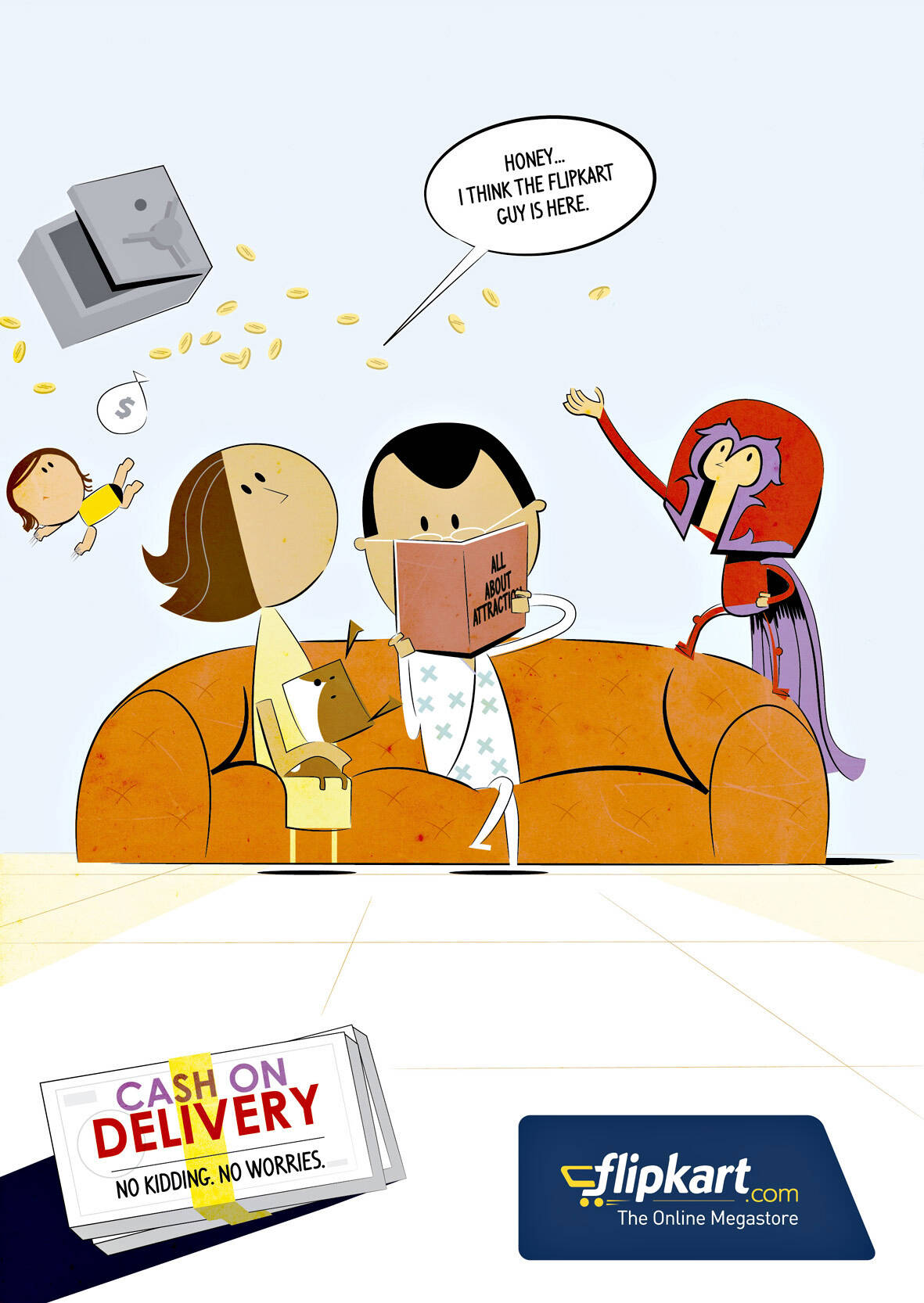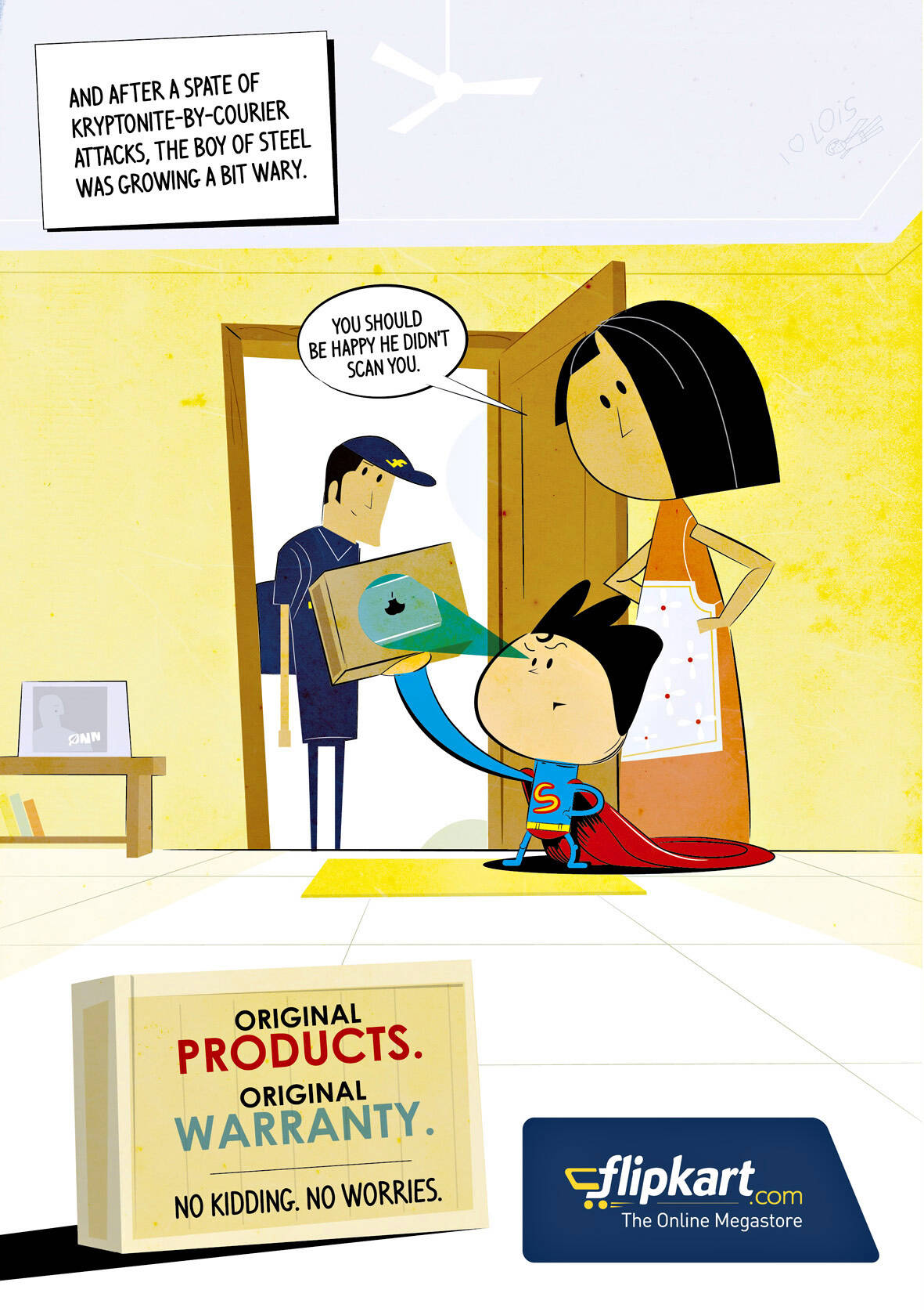 This professional campaign titled 'Super Kidding - Original Products, Super Kidding - Cash o...' was published in India in October, 2011. It was created for the brand: Flipkart, by ad agency: Happy Creative Services. This Print medium campaign is related to the Retail Services industry and contains 3 media assets. It was submitted about 14 years ago.