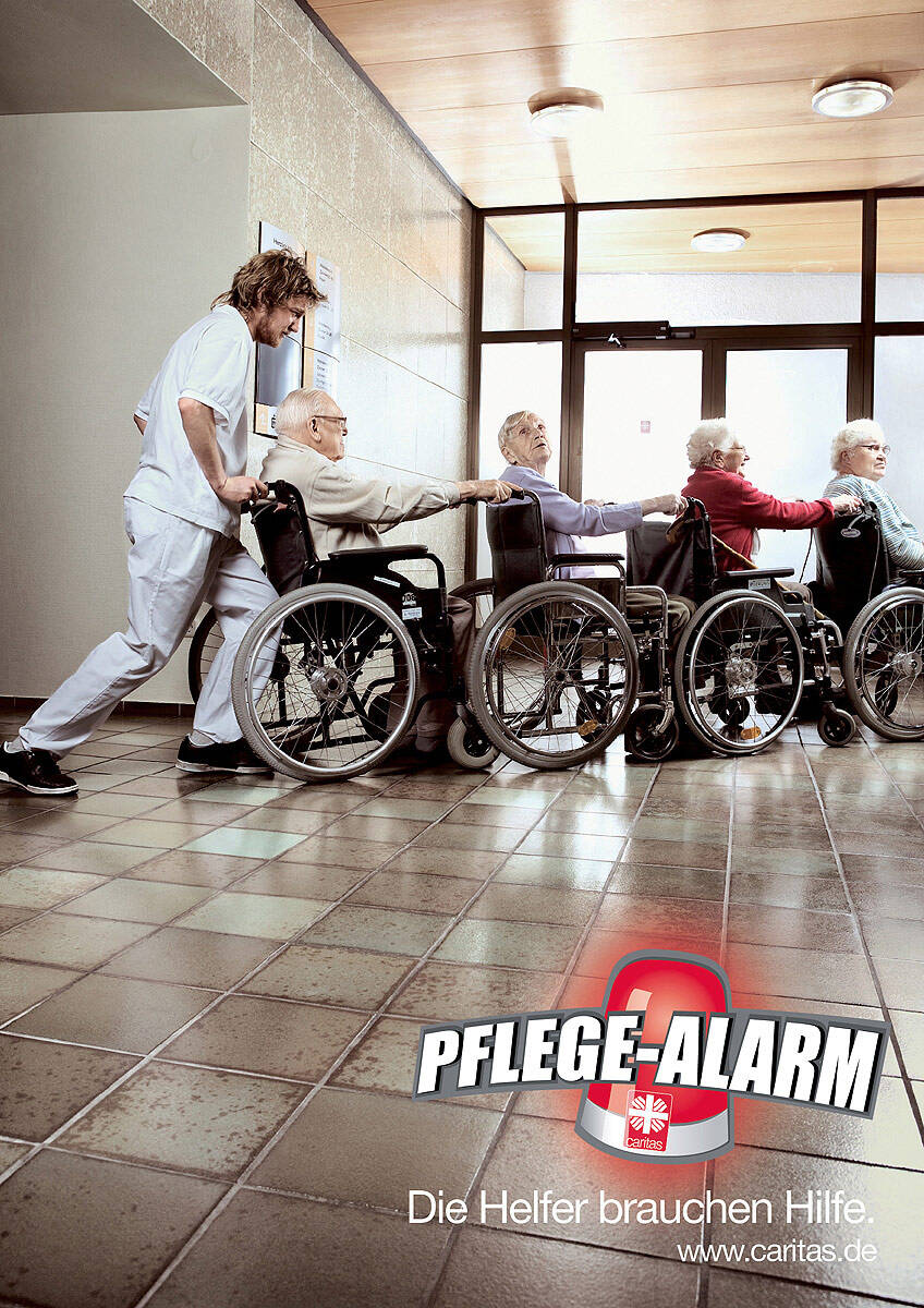 This professional campaign titled 'Supernurse, Wheelchair-queue' was published in Germany in March, 2008. It was created for the brand: Caritas, by ad agency: RitterSlagman. This Print medium campaign is related to the Public Interest industry and contains 2 media assets. It was submitted over 17 years ago.