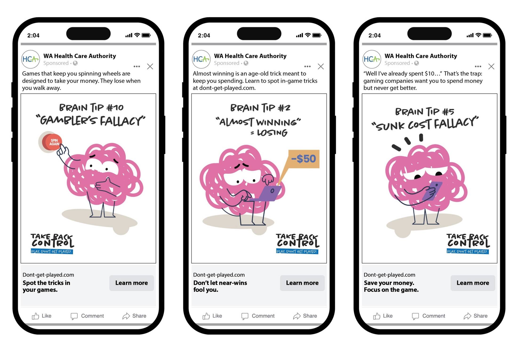 Take Back Control is a Washington State–based youth awareness campaign that exposes how loot boxes and microtransactions hijack the brain, without ever feeling preachy. In Washington, middle and high school boys are 2–4 times more likely to report gambling behaviors, and early exposure significantly increases the risk of problem gambling later in life. We introduce Brian, a cartoon version of your brain, who breaks down how dopamine, chance‑based rewards, and game design tricks keep players spending. It feels like a fun animated episode, but delivers a real realization: if a game takes your money and decides what you get, that’s gambling. By making teens feel smart, informed, and in control, the campaign turns awareness into empowerment, so they can keep gaming, without getting played. Developed by Quinn Thomas in partnership with the Washington State Health Care Authority, Take Back Control helps young people recognize the system, and choose when to step back. The campaign is actively running across social media, targeted display ads, and influencer content, and is supported by a dedicated website: https://dont-get-played.com