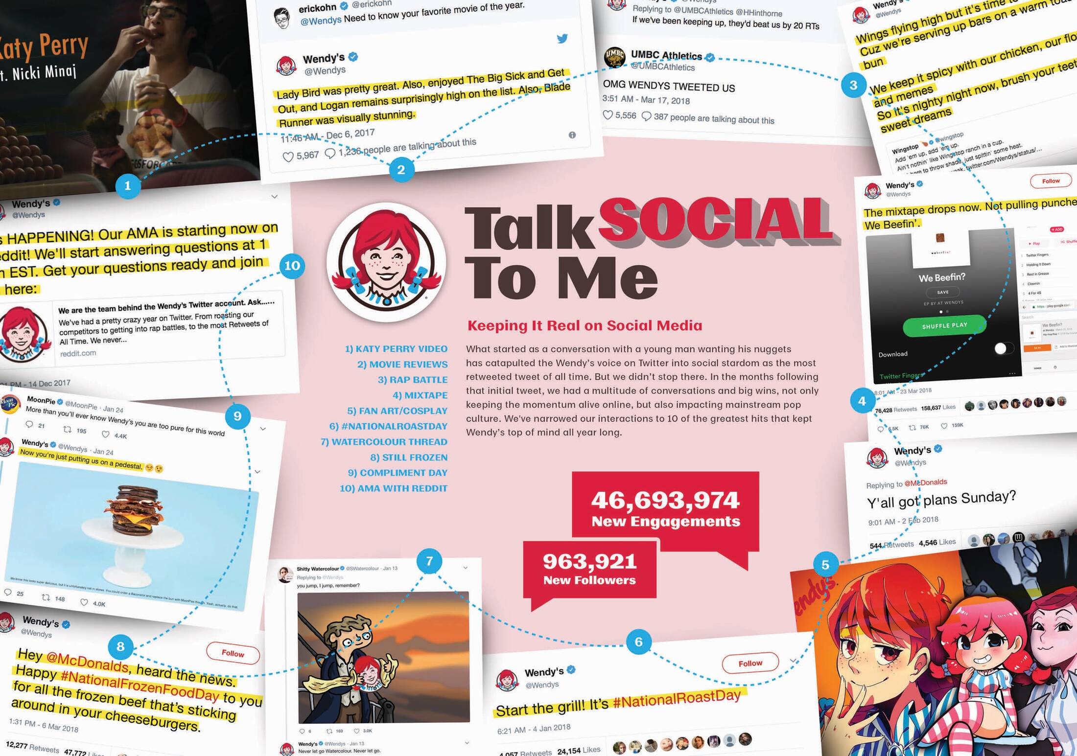 This professional campaign titled 'Talk Social to Me' was published in United States in May, 2017. It was created for the brand: Wendy's, by ad agency: WPP. This Digital medium campaign is related to the Food industry and contains 2 media assets. It was submitted almost 7 years ago.