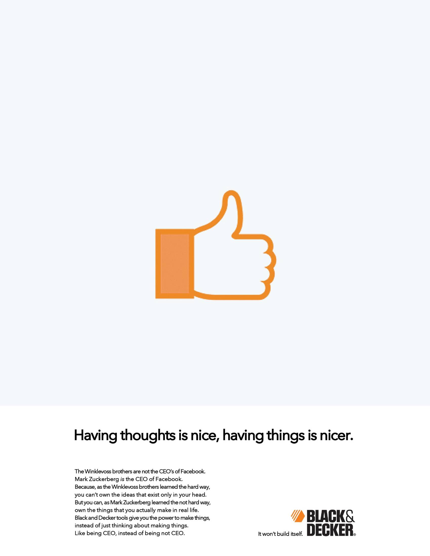 This student campaign titled 'Talk, Thoughts' was published in United States in December, 2015. It was created for the brand: Black&Decker, . This Print medium campaign is related to the Electronics, Technology industry and contains 2 media assets. It was submitted about 10 years ago.