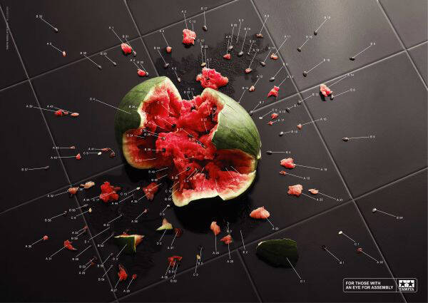 This professional campaign titled 'Watermelon' was published on October 27, 2005. It was created for the brand: Tamiya, by ad agency: TBWA. This Print medium campaign is related to the Gaming industry and contains 1 media asset. It was submitted about 20 years ago.