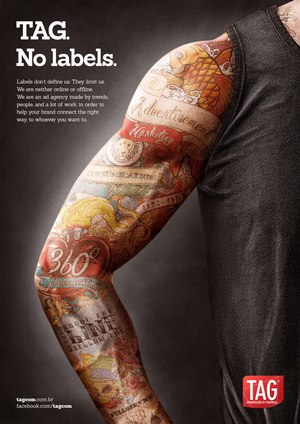 This professional campaign titled 'Tattoo' was published in Brazil in January, 2013. It was created for the brand: TAG, by ad agency: TAG. This Print medium campaign is related to the Agency Self-Promo industry and contains 1 media asset. It was submitted almost 13 years ago.