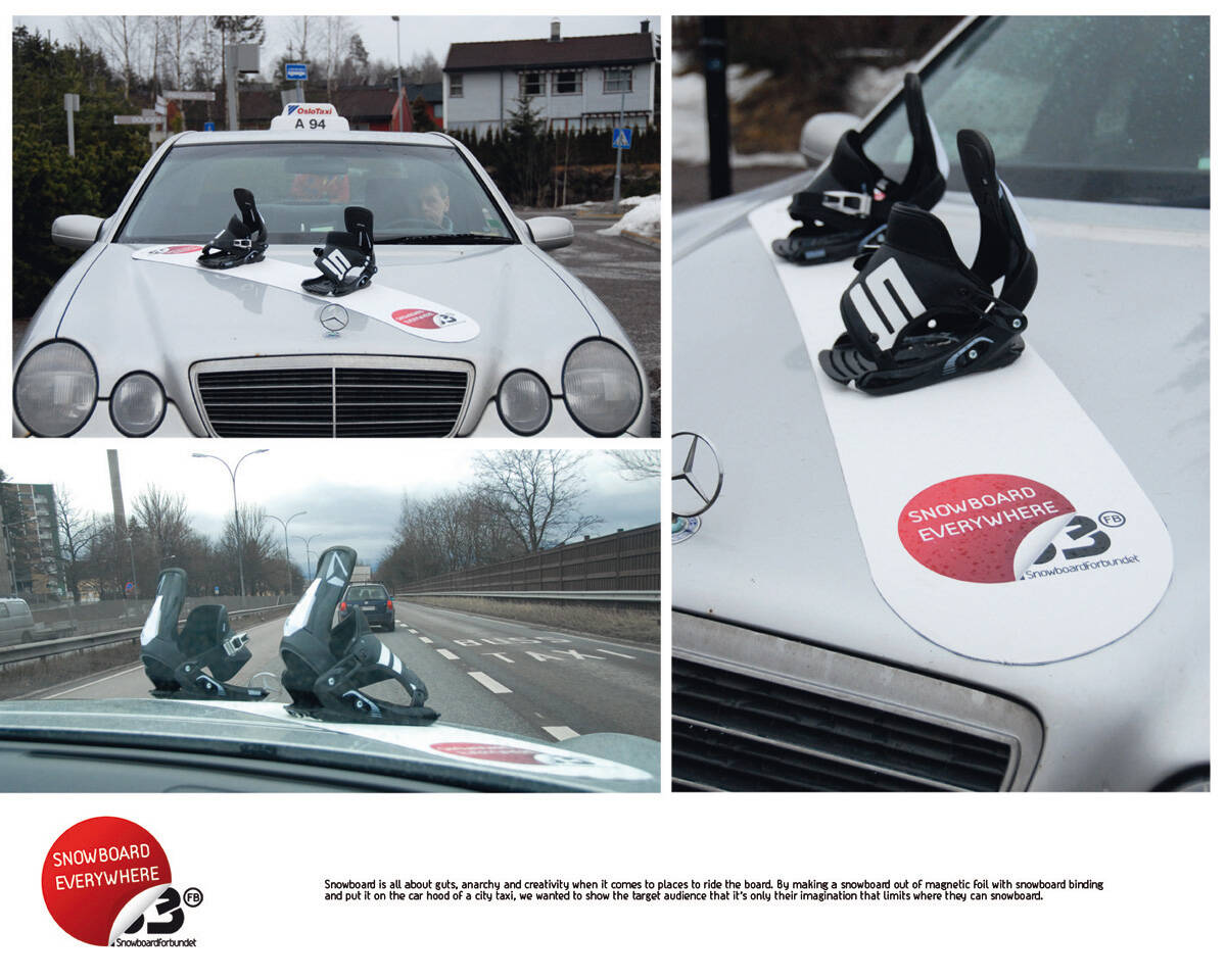 This professional campaign titled 'Taxi' was published in Norway in April, 2008. It was created for the brand: Norwegian Snowboard Association, by ad agency: Uncle. This Ambient medium campaign is related to the Other industry and contains 1 media asset. It was submitted over 17 years ago.