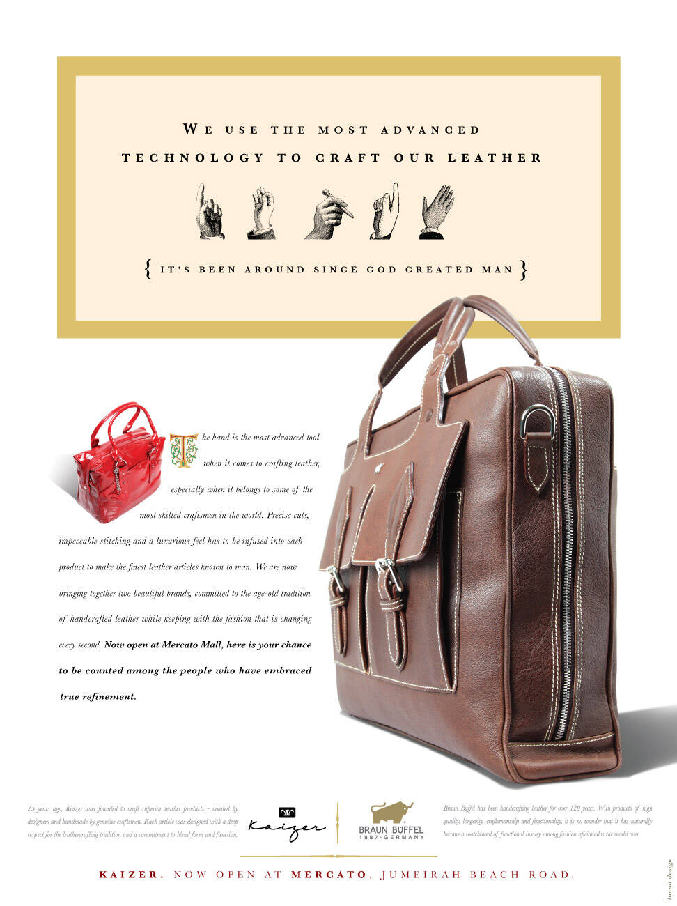 This professional campaign titled 'Technology, Germans, Civilization, Beautiful' was published in United Arab Emirates in April, 2009. It was created for the brands: Braun Buffel and Kaizer, by ad agency: Tonnit. This Print medium campaign is related to the Personal Accessories industry and contains 4 media assets. It was submitted over 16 years ago.