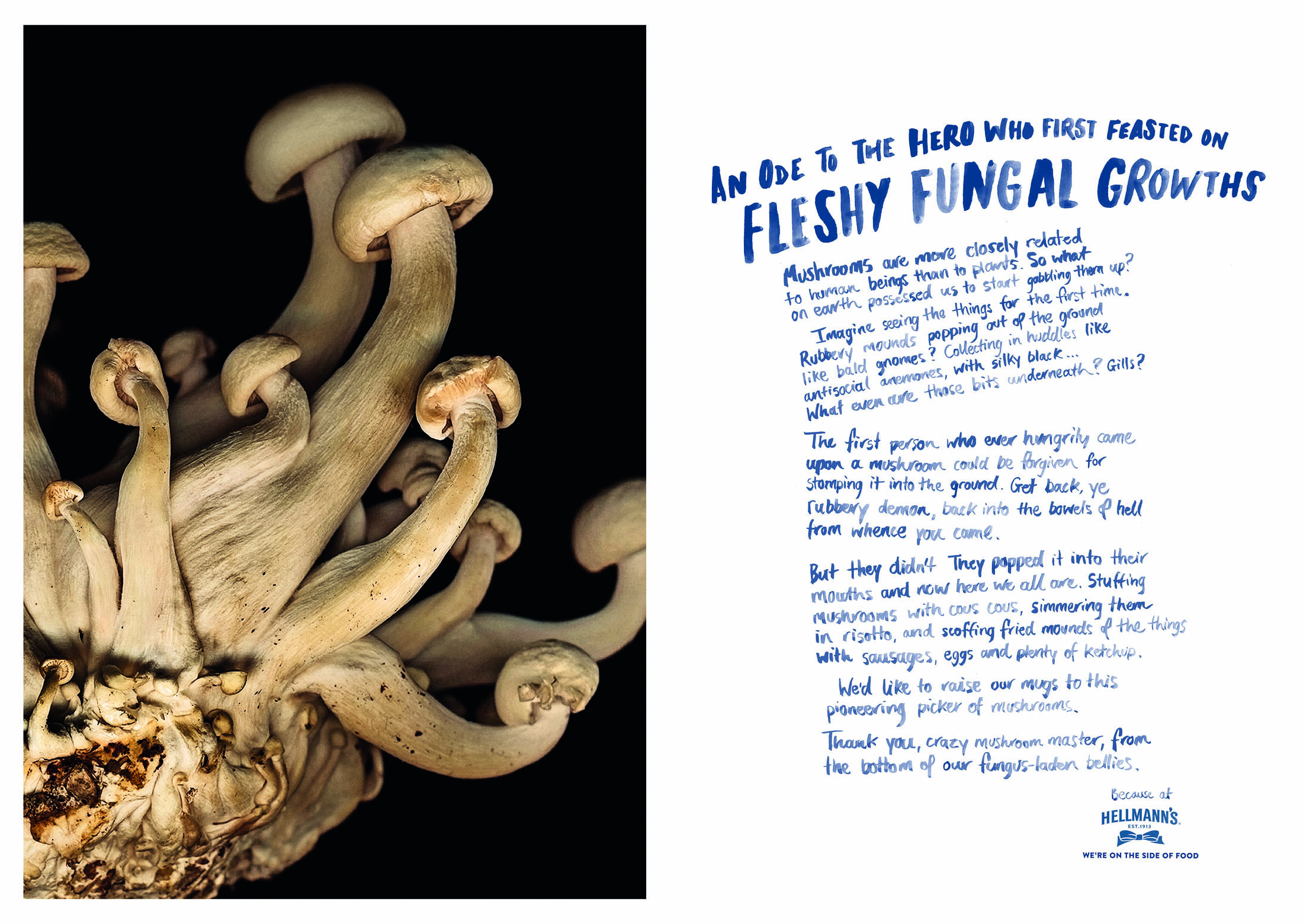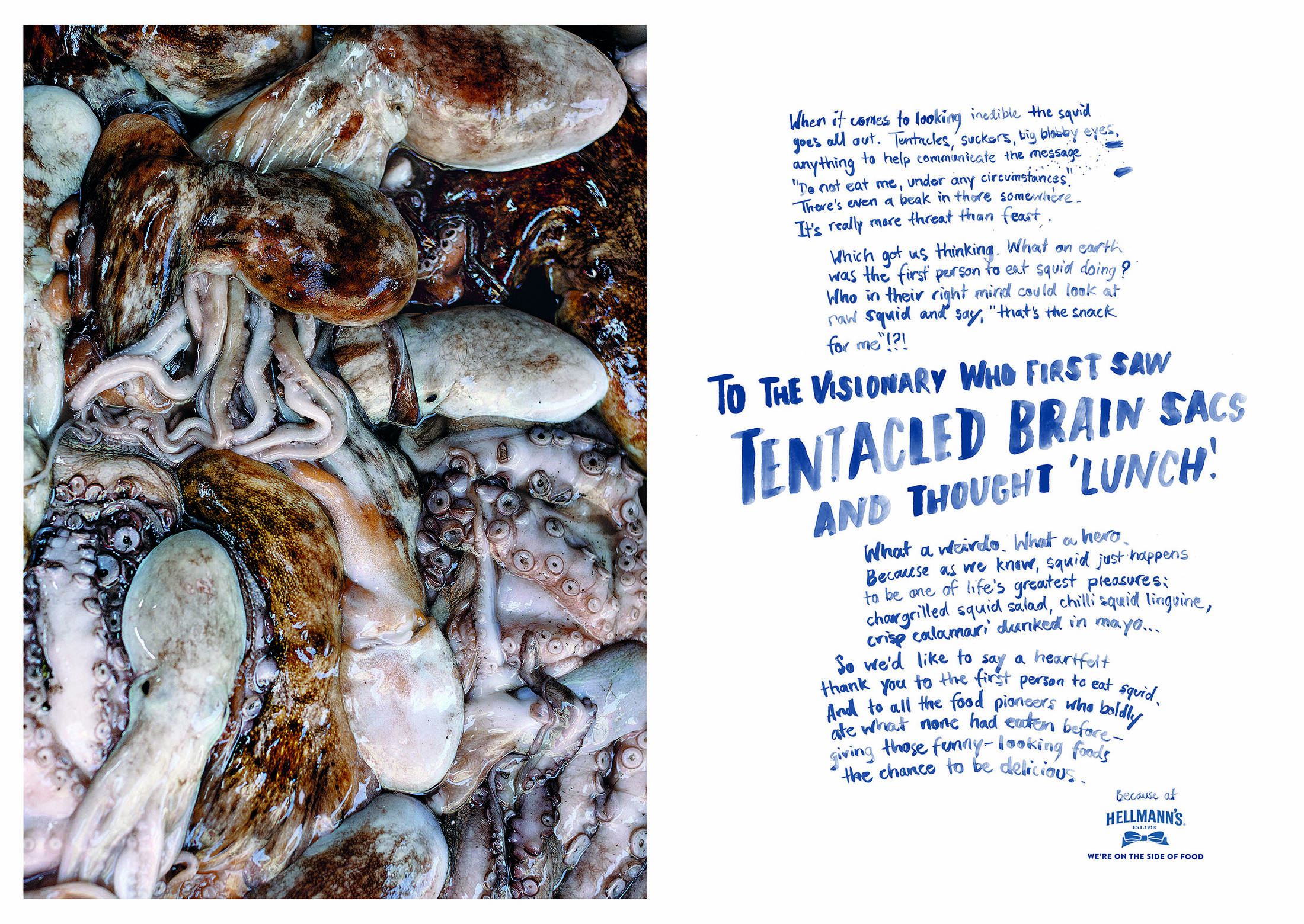 This professional campaign titled 'Tentacled Brain Sacs, Scaly Little Water Nuggets, Fleshy ...' was published in United Kingdom in April, 2017. It was created for the brand: Hellmann's, by ad agency: Ogilvy. This Print medium campaign is related to the Food industry and contains 3 media assets. It was submitted over 8 years ago.