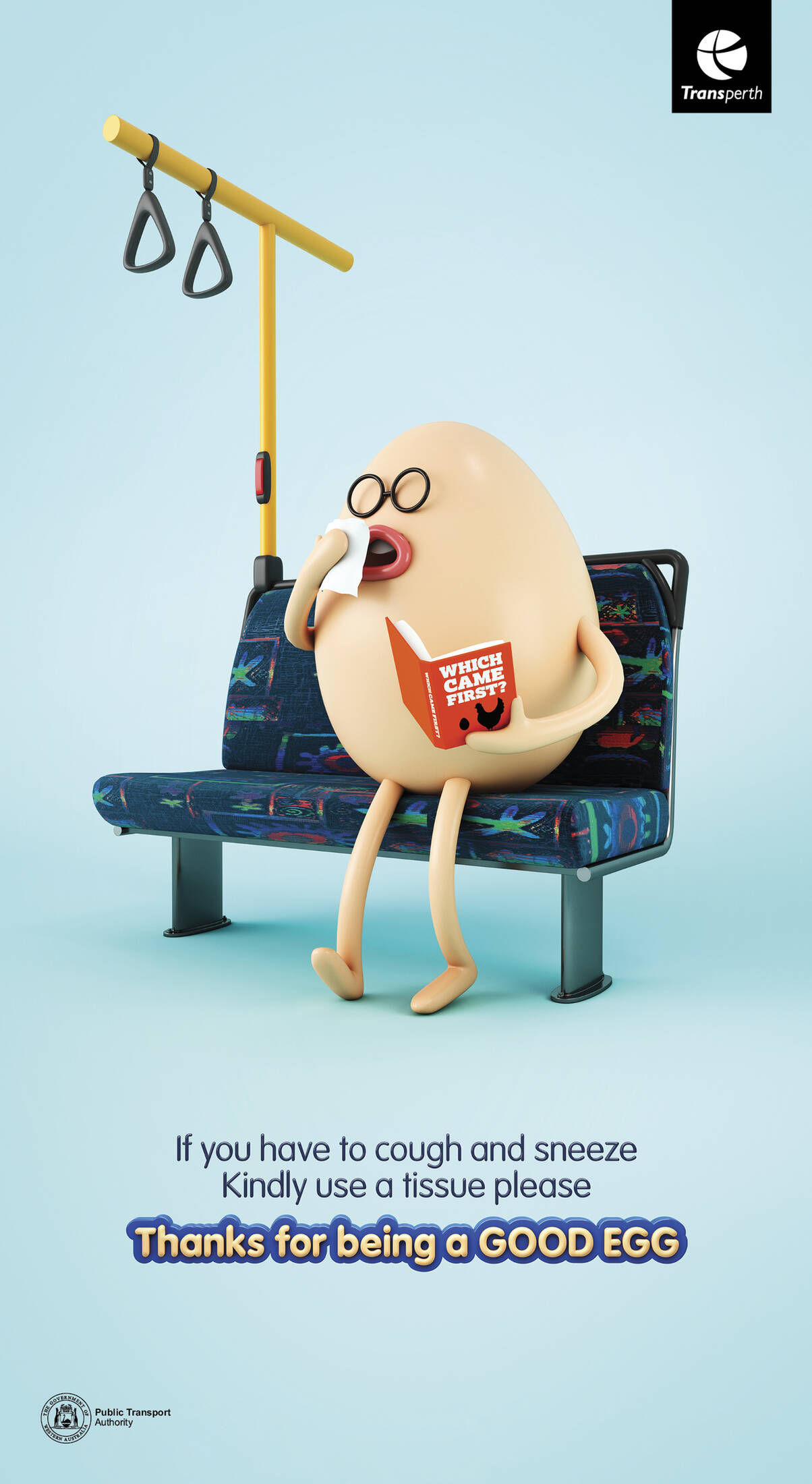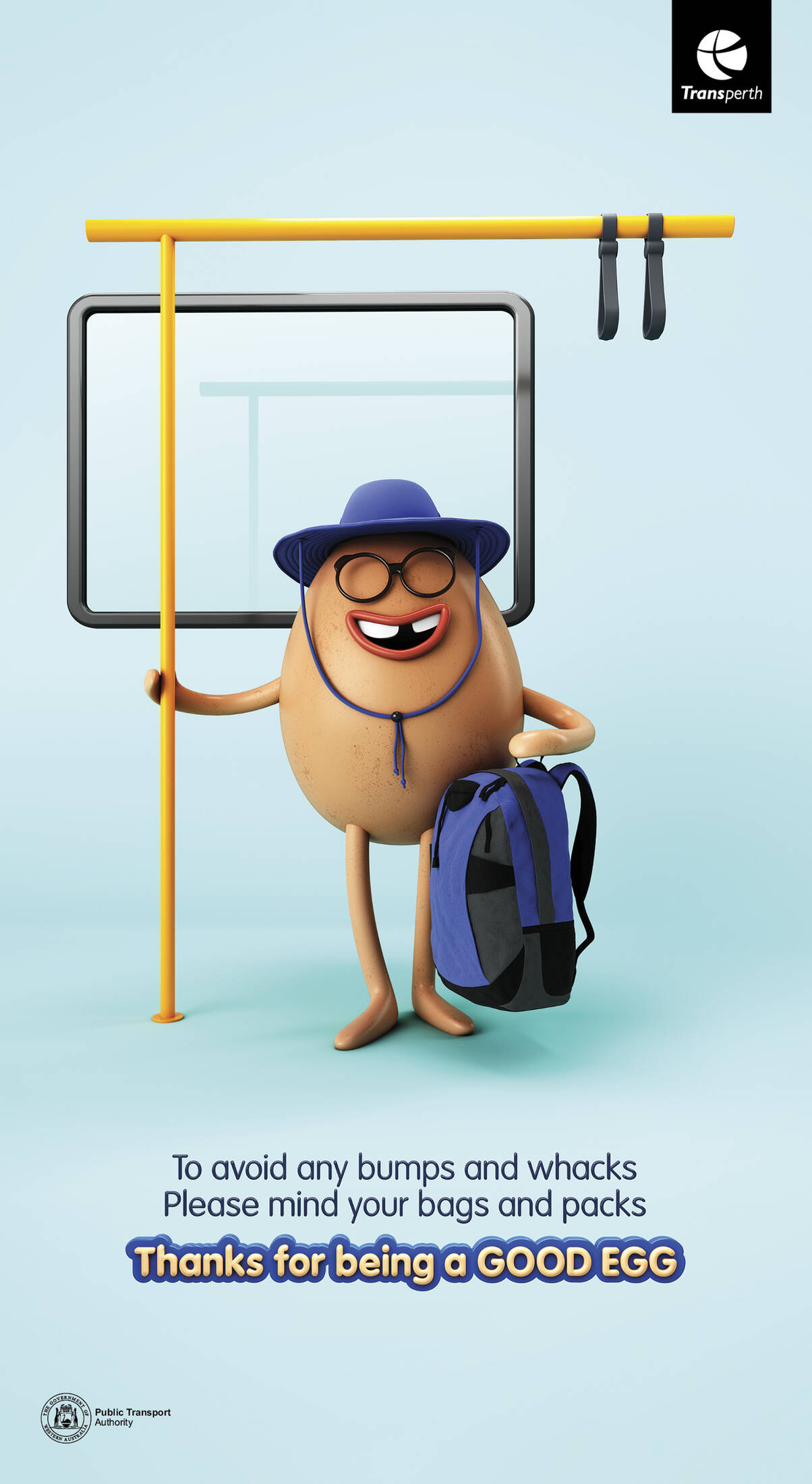 This professional campaign titled 'Thanks for being a GOOD EGG' was published in Australia in November, 2019. It was created for the brand: Transperth, by ad agency: Gatecrasher. This Print medium campaign is related to the Transport industry and contains 3 media assets. It was submitted about 6 years ago by Senior Art Director: Henry Billington of Gatecrasher.