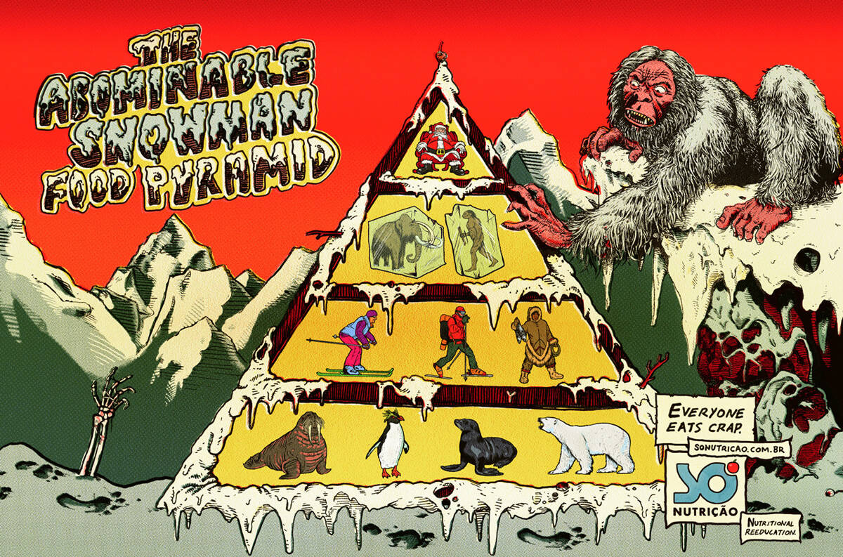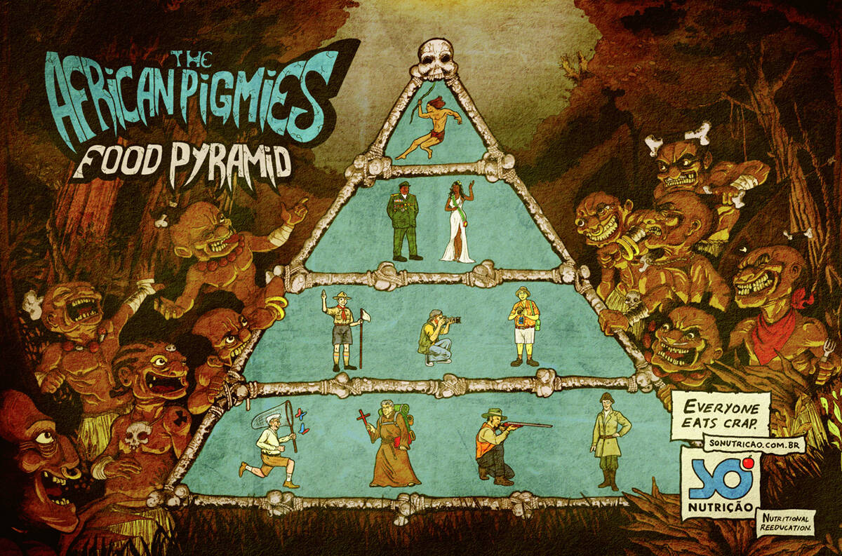 This professional campaign titled 'The african pigmies food pyramid, The swamp monster food ...' was published in Brazil in March, 2010. It was created for the brand: Só Nutrição, by ad agency: Ogilvy. This Print medium campaign is related to the Public Interest industry and contains 3 media assets. It was submitted over 15 years ago.