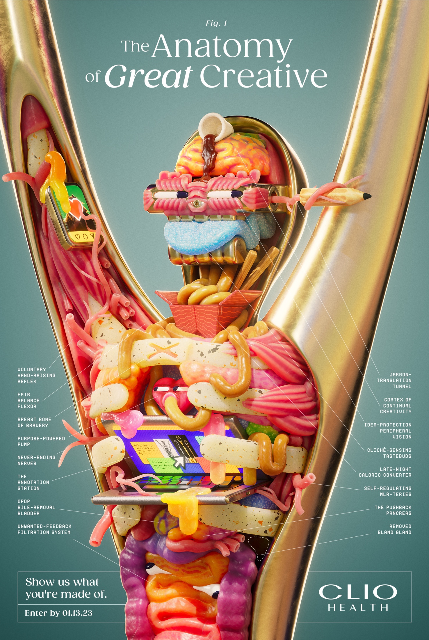 This professional campaign titled 'The Anatomy of Great Creative' was published in United States in November, 2022. It was created for the brand: Clio Awards, by ad agency: Grey Health and Wellness. This Digital and Print media campaign is related to the Health and Pharmaceutical industries and contains 1 media asset. It was submitted about 3 years ago.