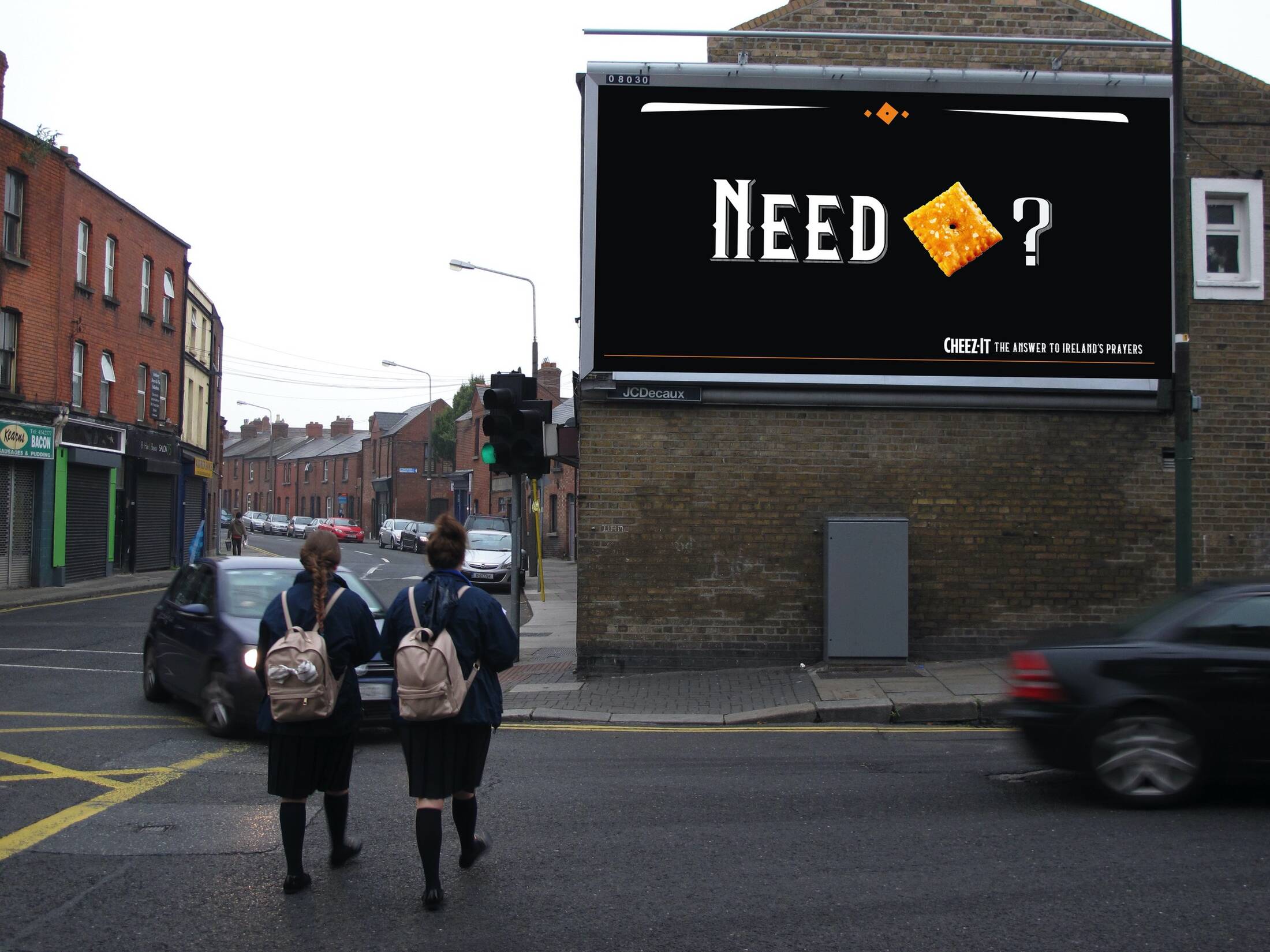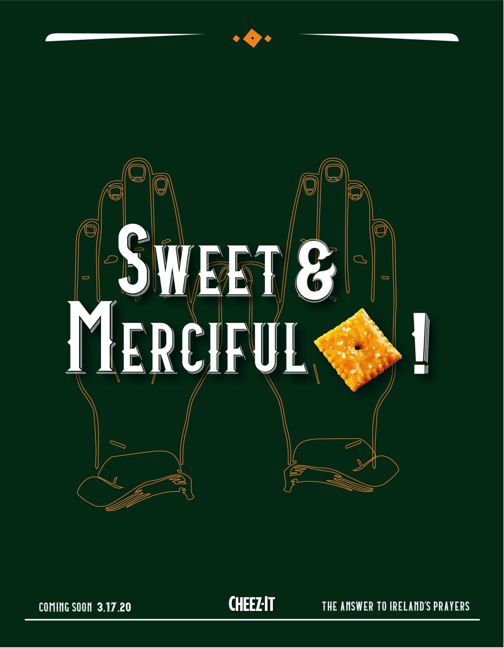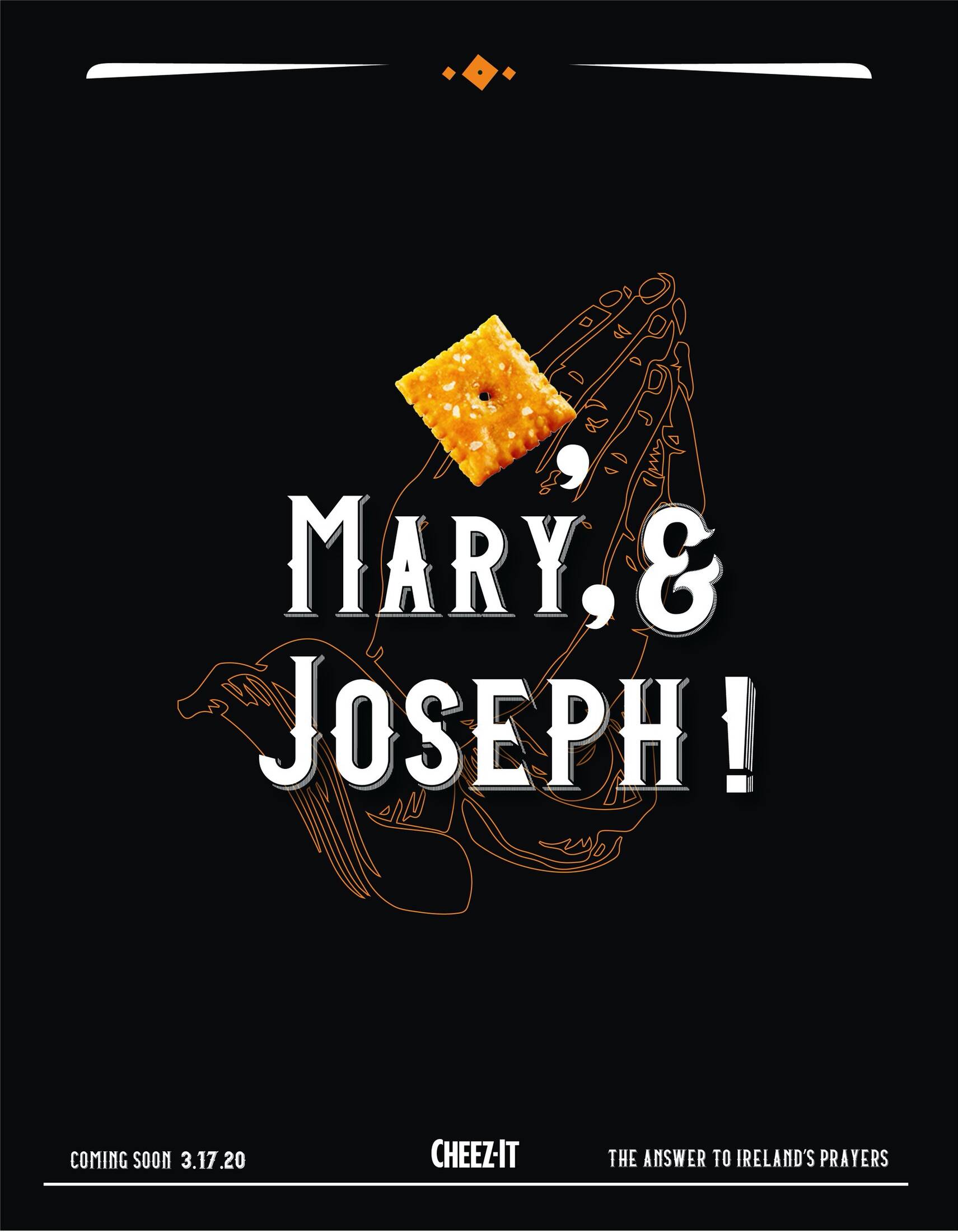 Ireland has never heard of Cheez-It because the crackers aren't available there. Yet. To introduce Cheez-It to the Irish people, we'll merely demonstrate they've been praying for them all along.