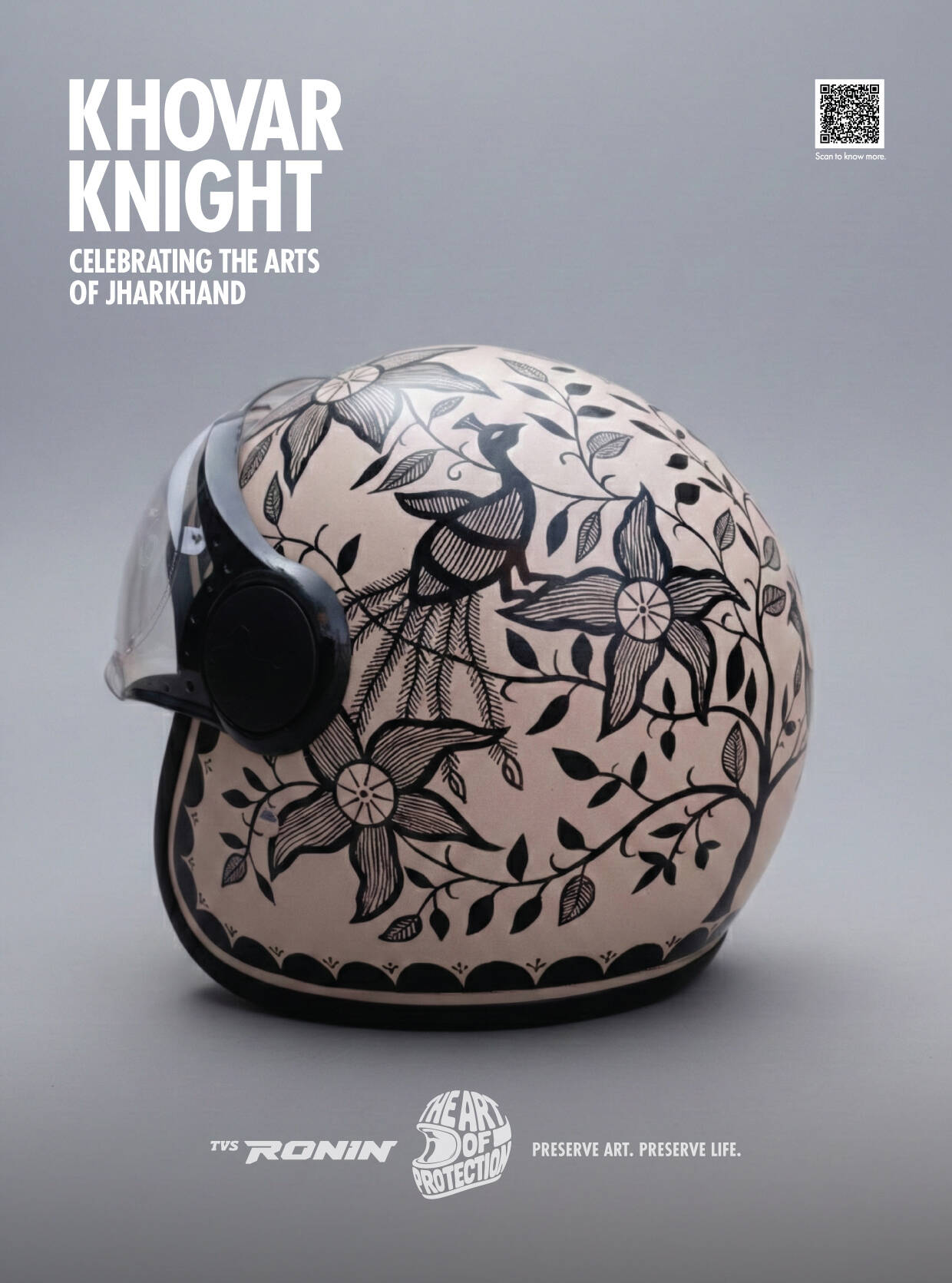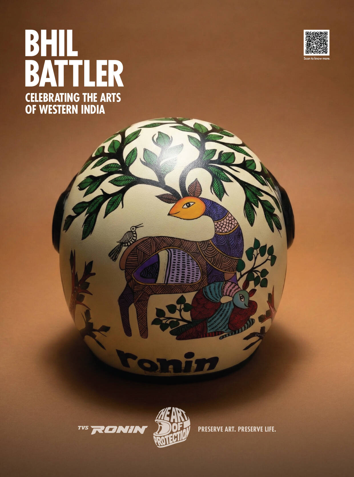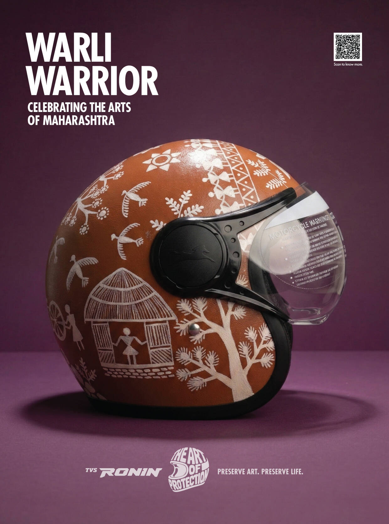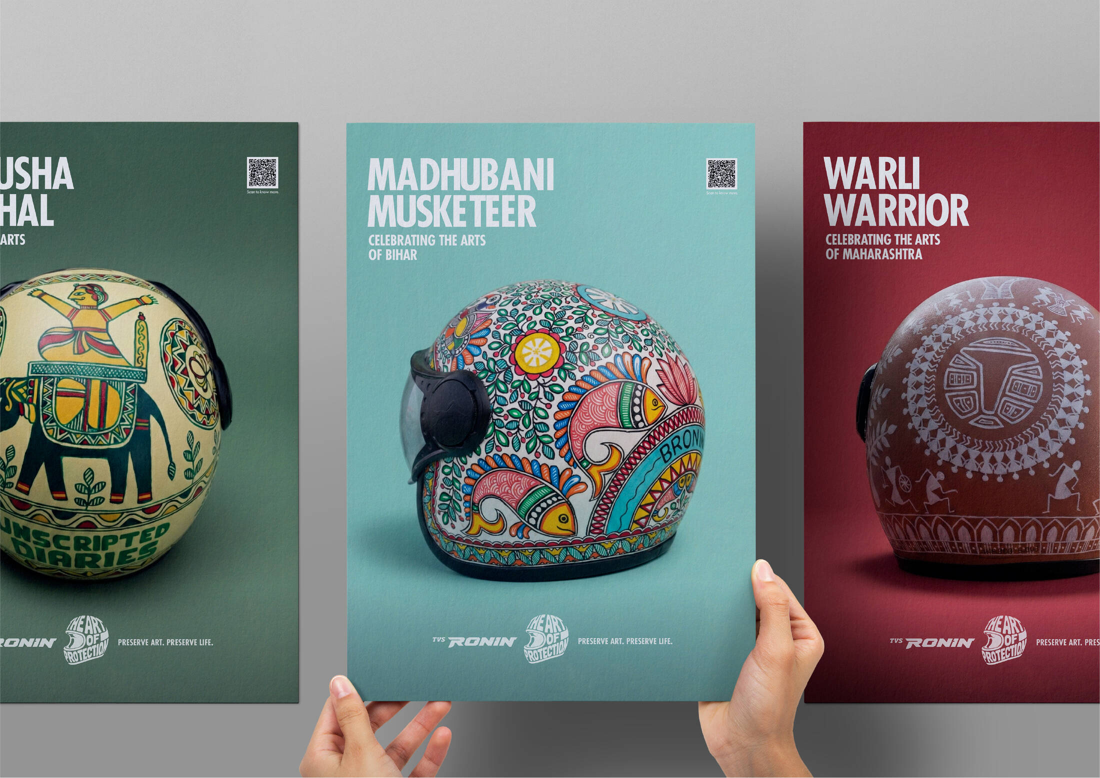 TVS RONIN’s The Art of Protection features a limited-edition collection of hand-painted helmets that fuse safety with storytelling. Each helmet is a wearable tribute to dying Indian folk arts, created in collaboration with homegrown artists. The design language, across over 380 hand-painted helmets, blends motorcycling elements with traditional folk art palettes and patterns. Since inception, the campaign has featured capsule launches, displays, workshops, collaborations, and on-ground installations that leverage vibrant design to promote both protection and preservation.